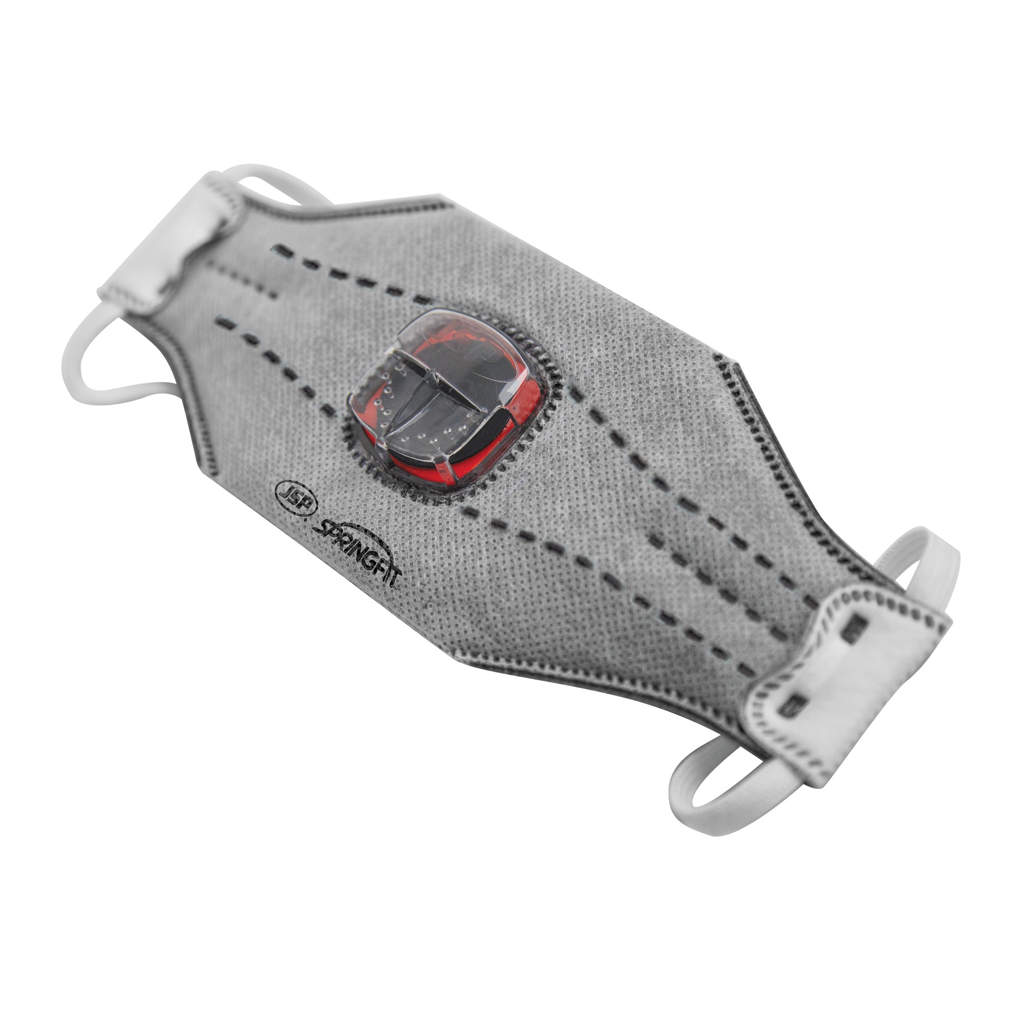 The SpringFit mask range features an endoskeleton that forms the mask away from the mouth and nostrils, making breathing easier than traditional folding masks. A typhoon valve on the front of the mask reduces any effort required to exhale, easing breathing further and reducing heat and moisture buildup within the mask.