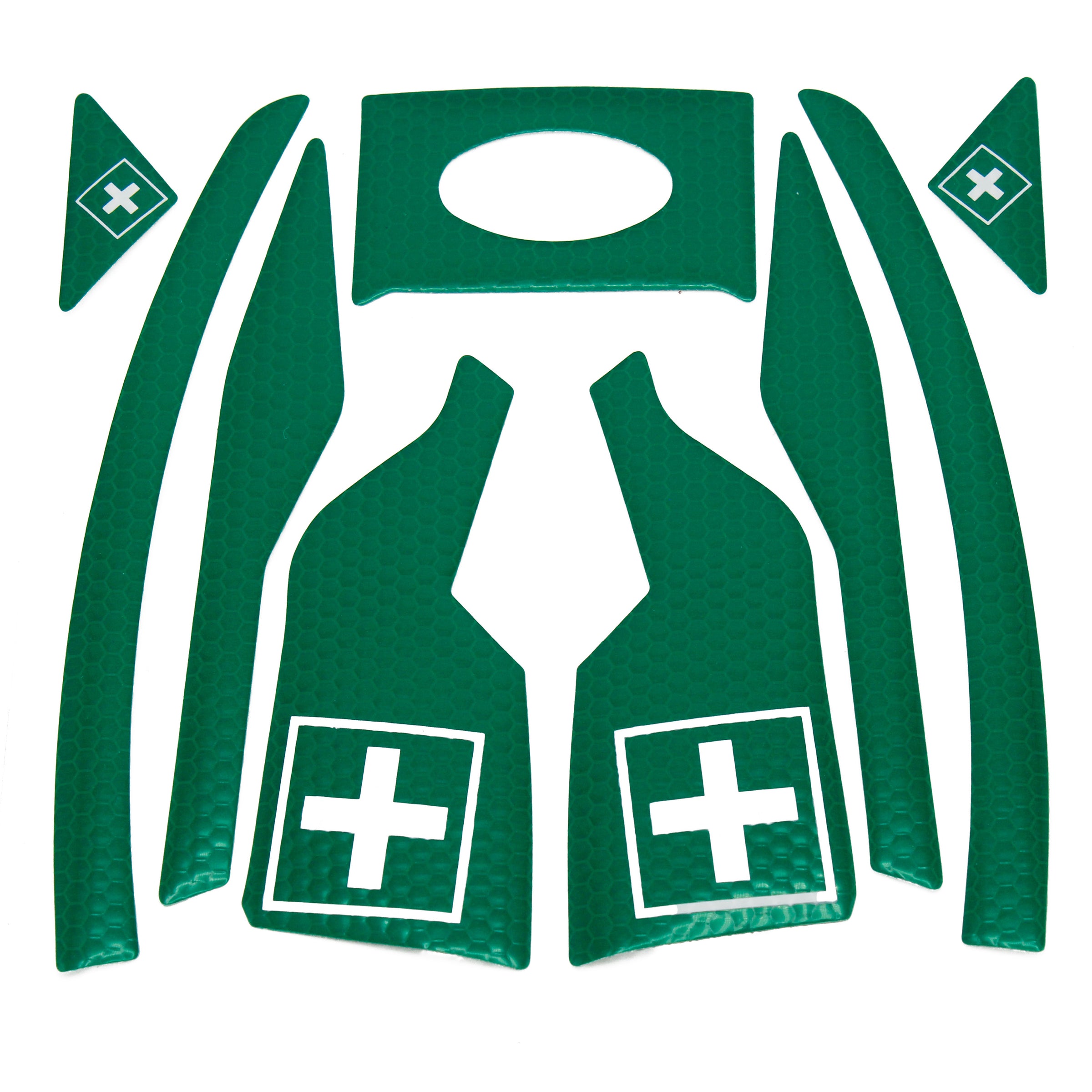 The stickers come on an easy-peel backing making them simple to install onto your helmet. We supply them in singles or in packs of ten allowing you to do your own helmet or kit out your whole crew. We have a selection of colours available to suit your company branding or safety requirements. If you are a first aider we have a first aid reflective kit available in the options on this page.