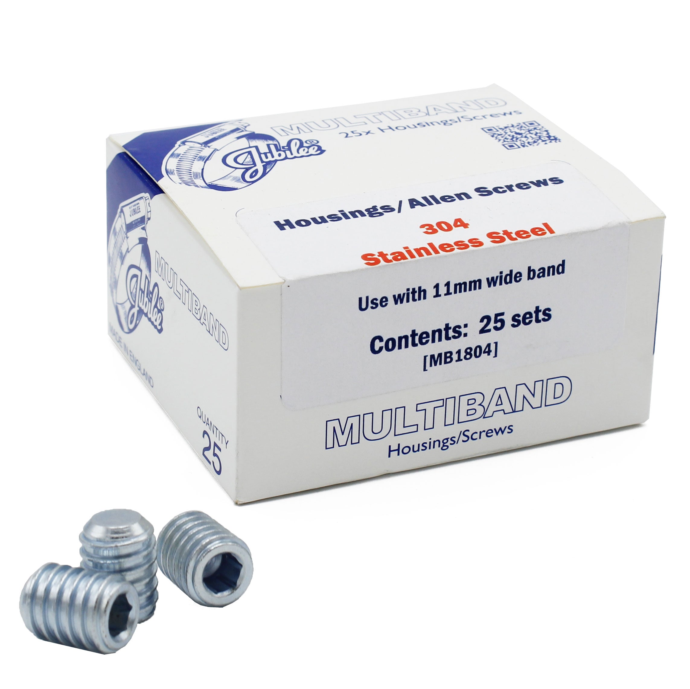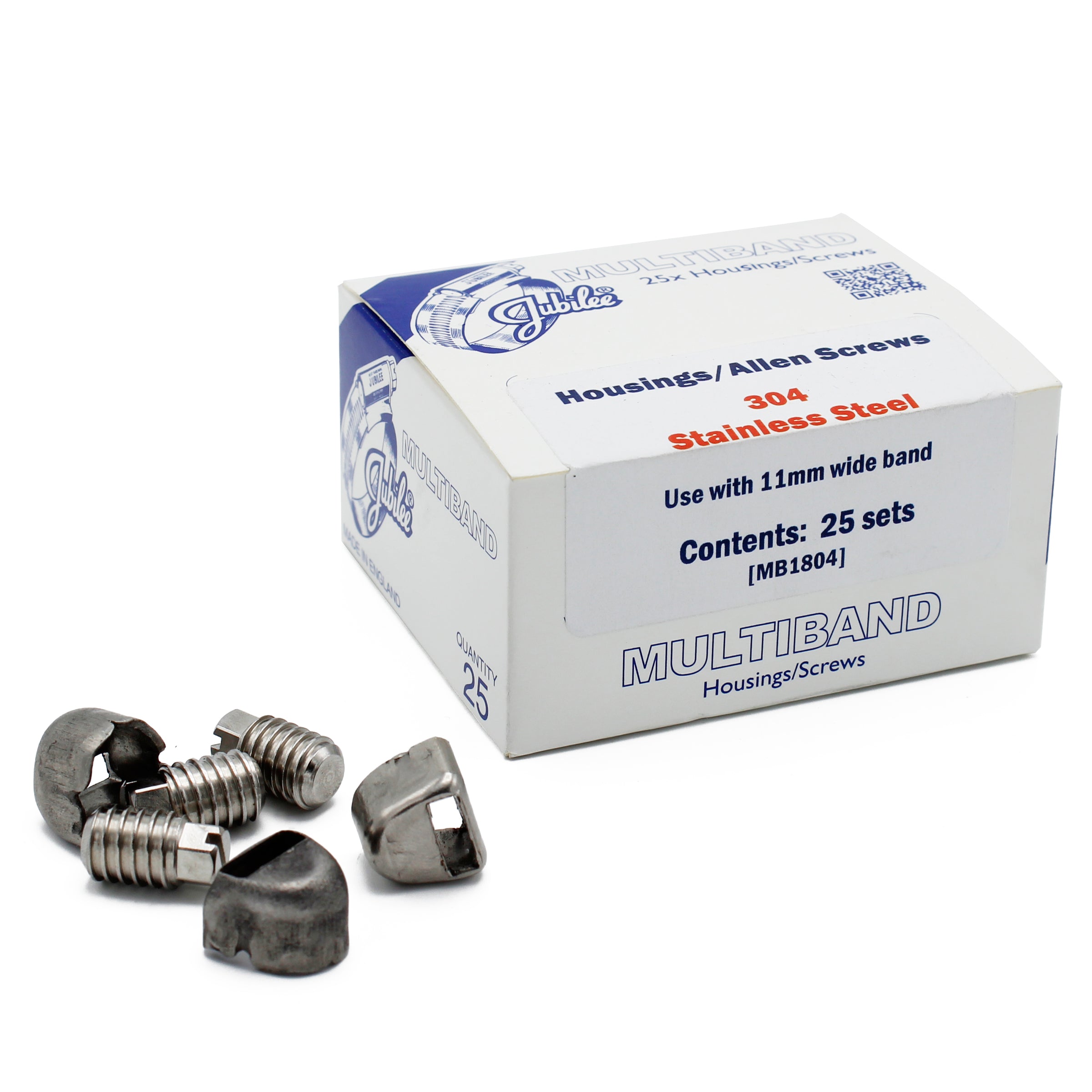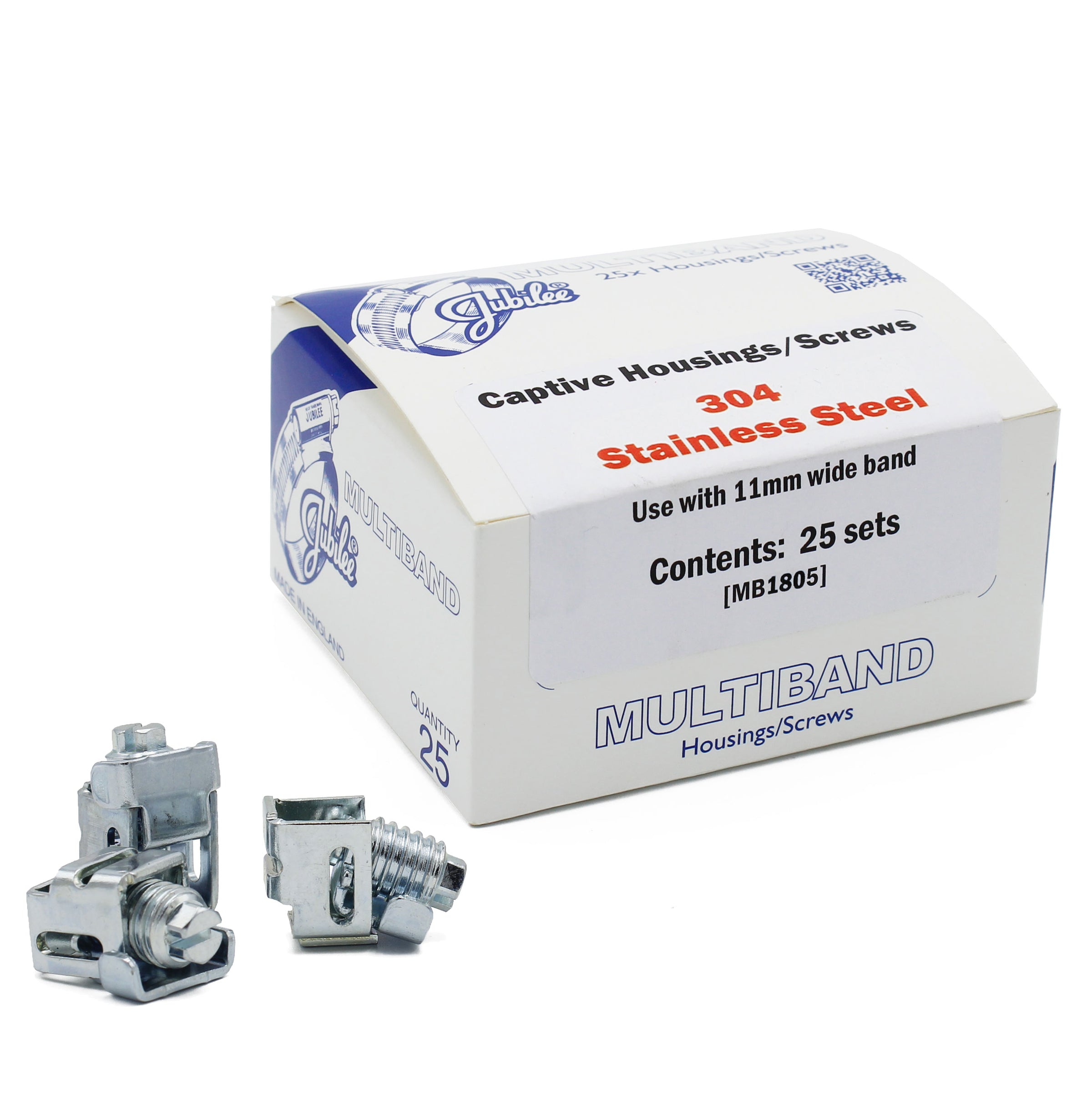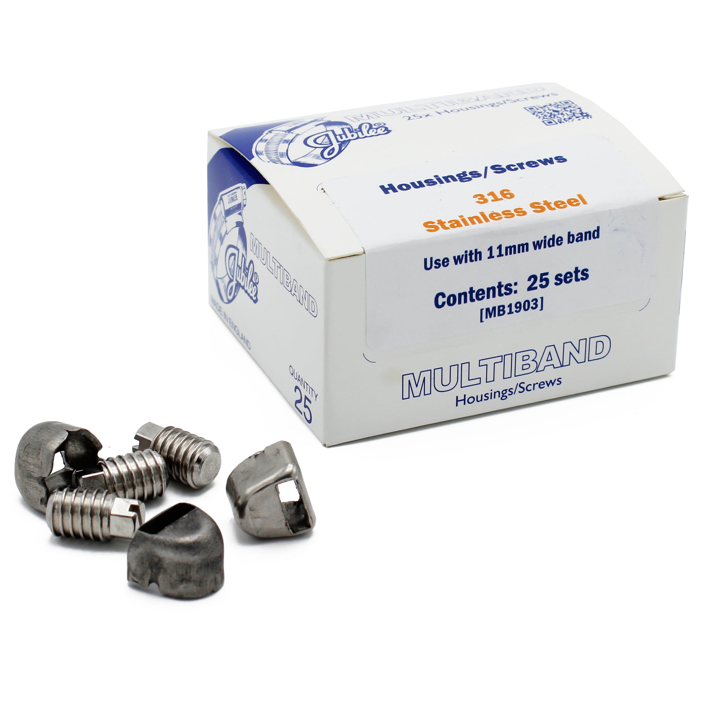 Each kit contains 25 housings and 25 screws; there is a choice of three different fixing types, which we have further details about below. All components in these fastening packs are made from the same material to ensure no bi-metallic corrosion, ensuring you get the most extended lifespan from your banding.