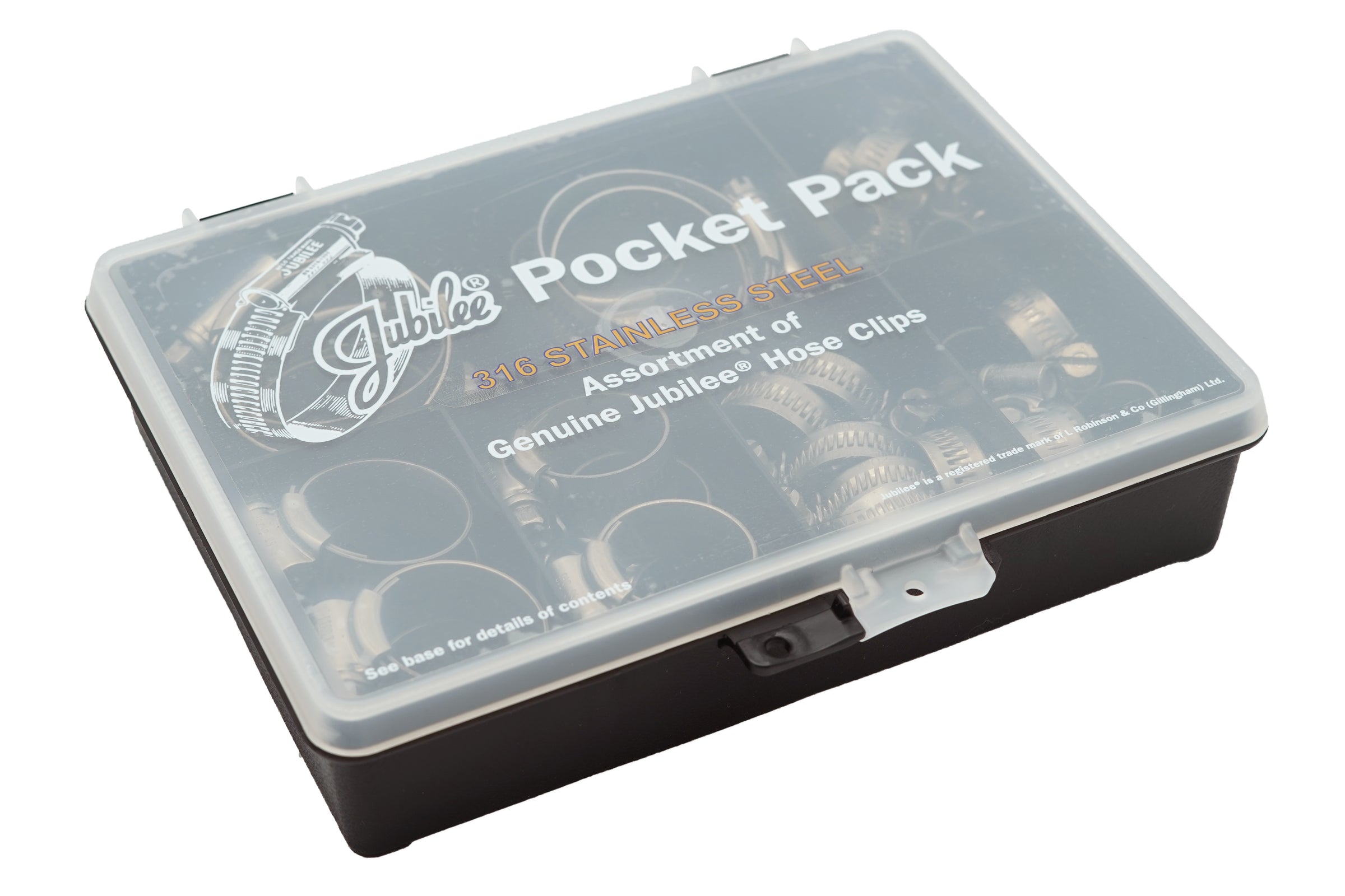 This 316-stainless grade “pocket pack” of Original style jubilee clips are perfect for those working in marine environments or anywhere else where corrosion is a significant issue.