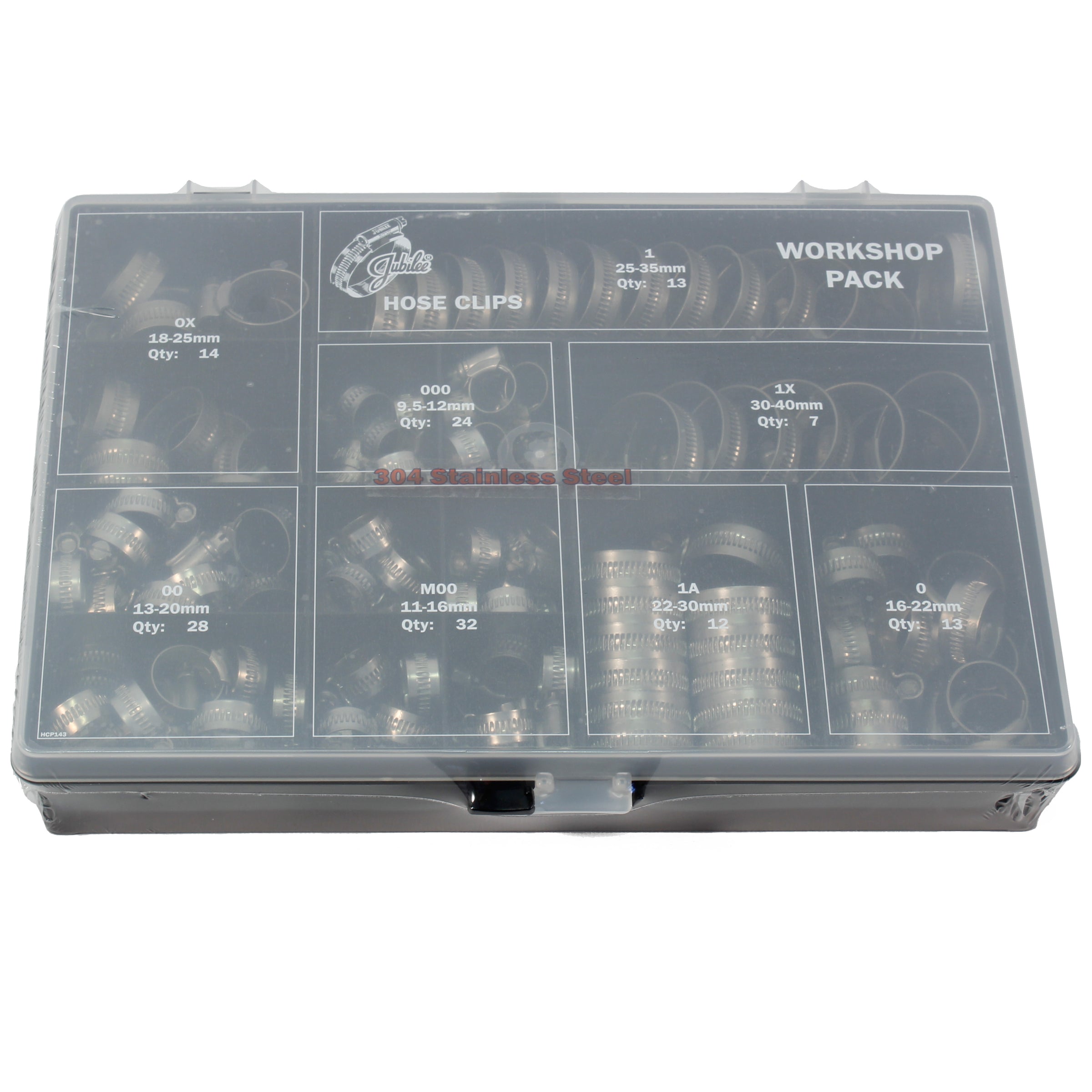 The Jubilee 304 grade stainless steel workshop pack is a larger kit that contains a wide selection of Jubilee original range hose clips. It allows you to take on most tasks that the average workshop sees.