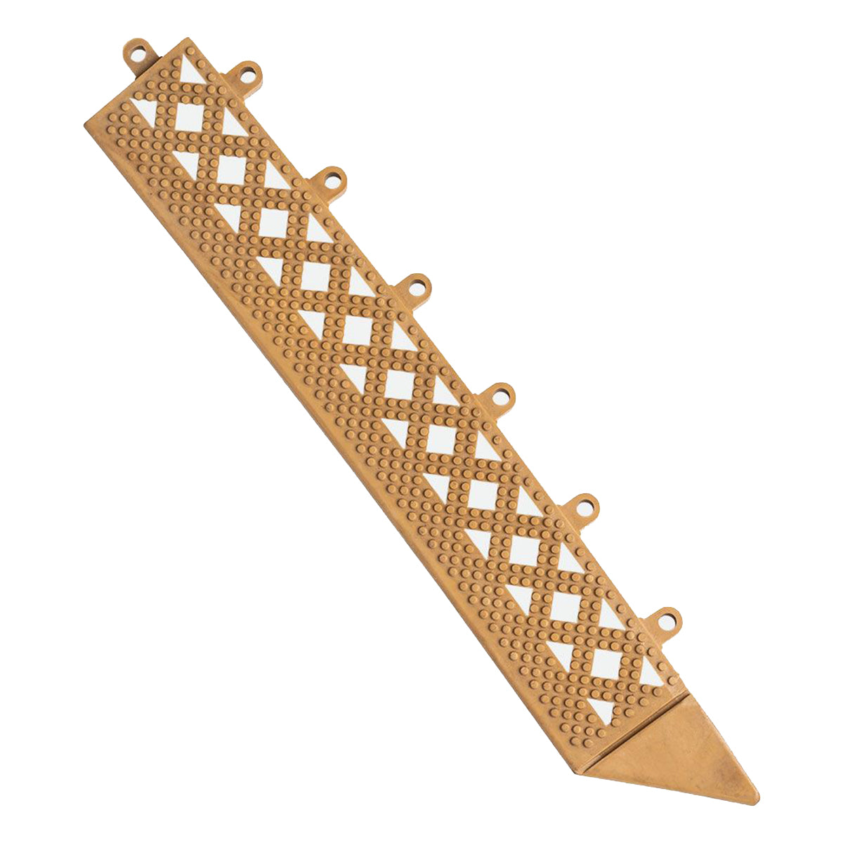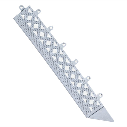 These edging strips for the Kumfi tile are essential if you want a clean deployment with tapered edges. They interlock around the exterior of the Kumfi PVC tile, providing a gradual transition between the underlying floor and the matting itself. With the choice of colours available in the Kumfi Tile range, you can also use these edging strips to create a contrasting boundary around the matted area.v