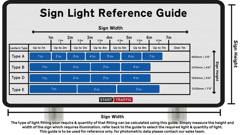 The light output of the lamp is perfect for use on signs up to 1370mm tall. For smaller signs up to 1.5m wide a single lamp unit should be sufficient, for larger use cases multiple lamps can be installed. Please see the sign light reference guide at the bottom of this page to help you work out which light you need.