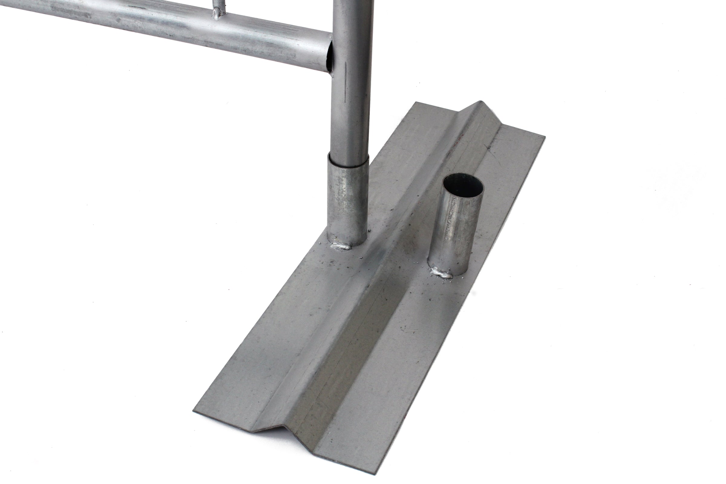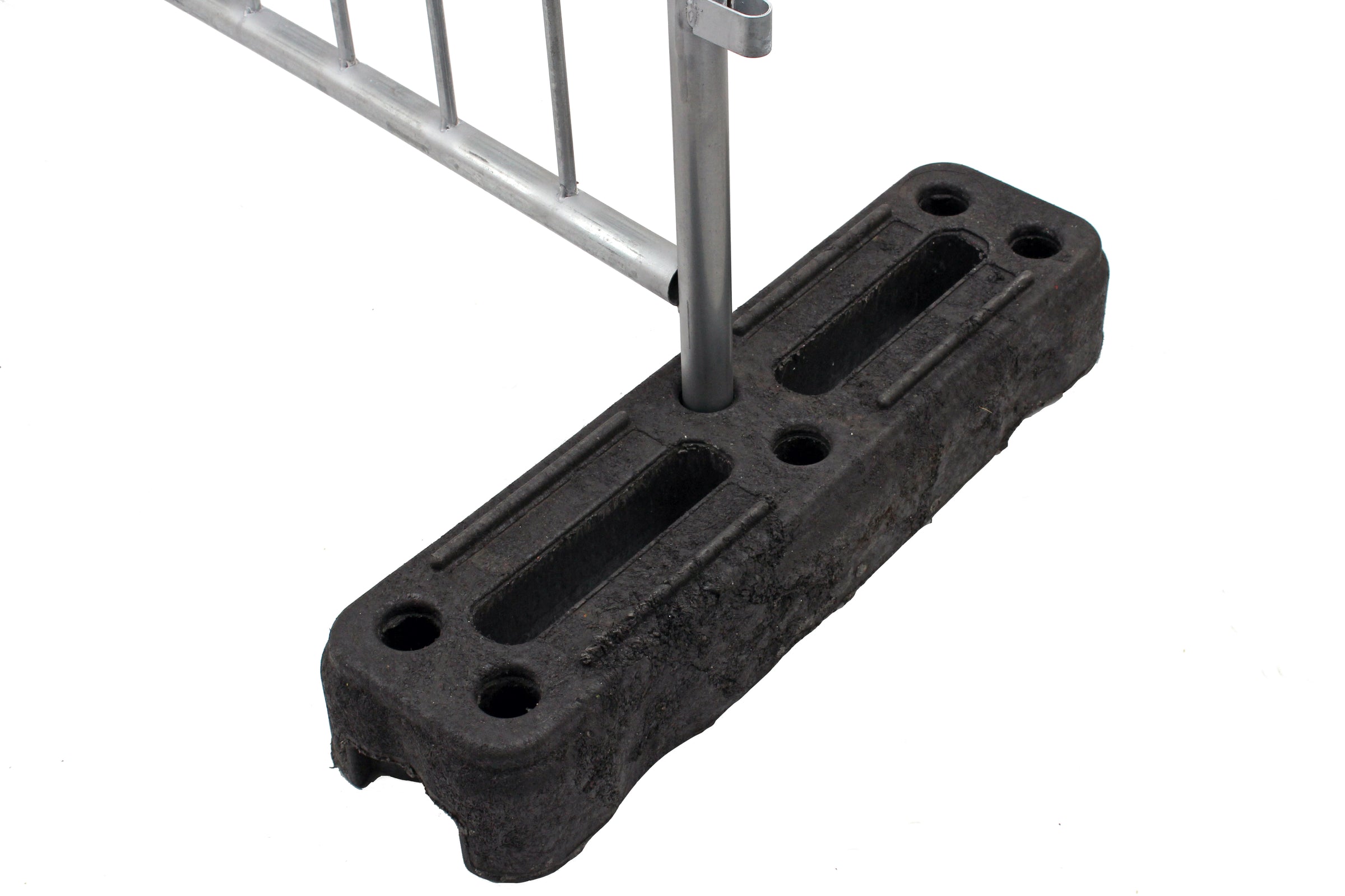 The foot for these barriers is sold separately and have the option of being purchased as a flat steel flat foot or a heavy-duty composite rubber foot. The metal foot is lower profile, and lighter-weight while the rubber foot offers improved stability and durability.