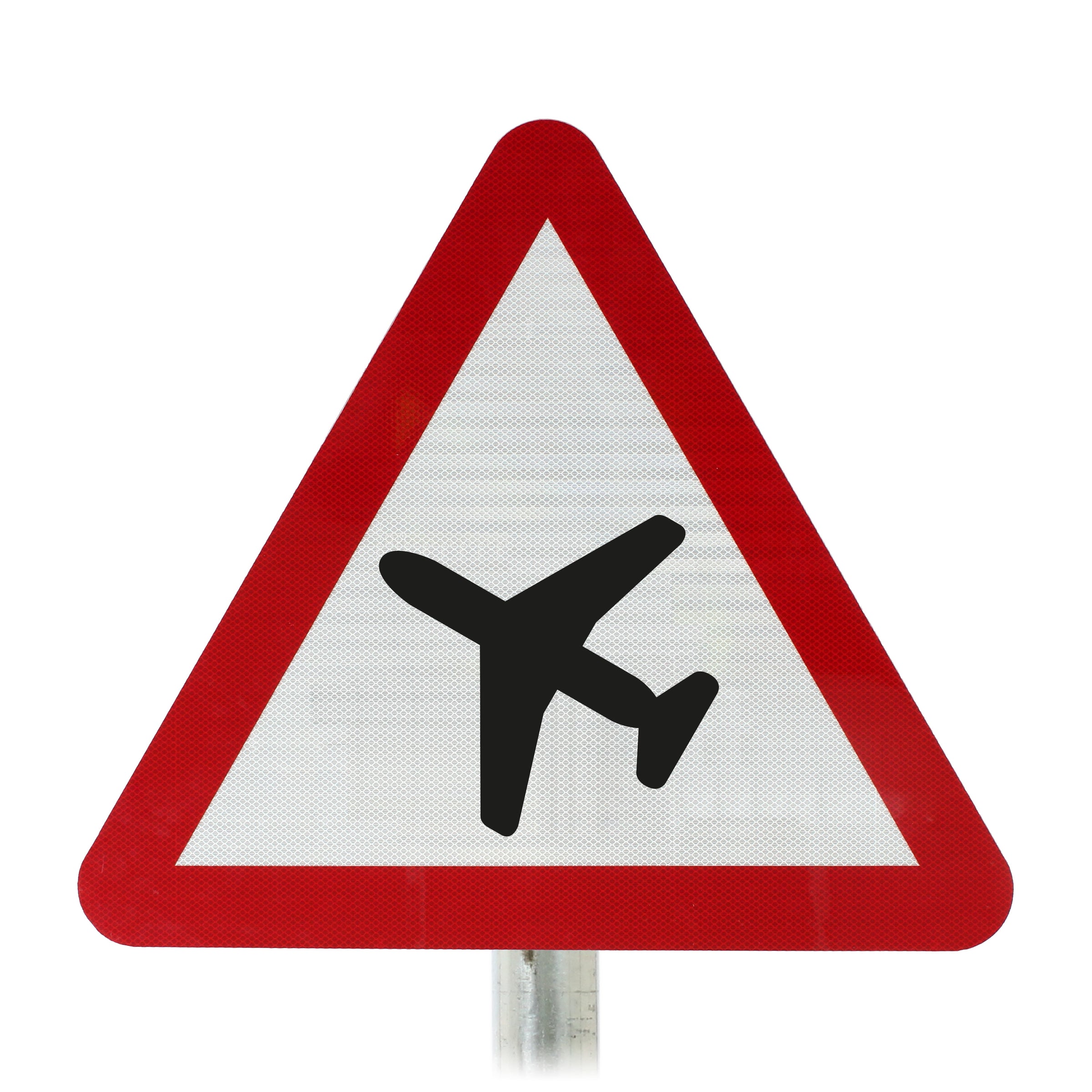 The airplane above road sign diagram 558 warns of low-flying aircrafts such as commercial jets or gliders. Its use is for roads around the vicinity of airfields as road users may be caught off guard by their appearance or sudden noise. If low-flying helicopters are to be expected, 558.1 is required.