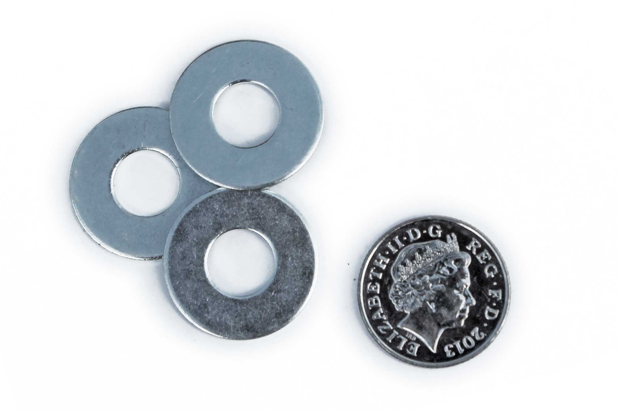 An M10 Penny Washer with a corrosion resistant Bright Zinc Plated Coating.