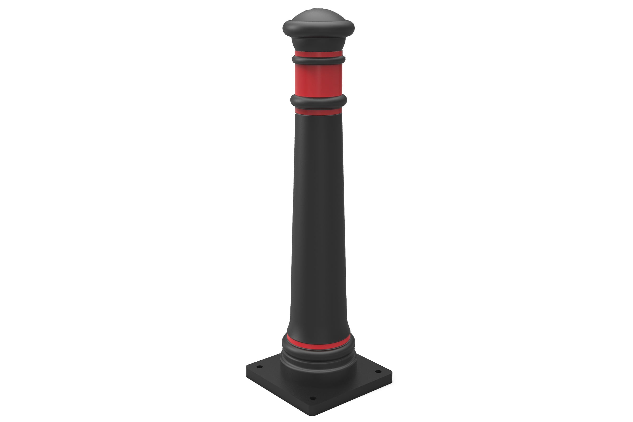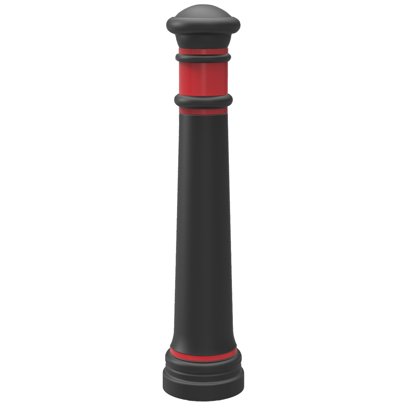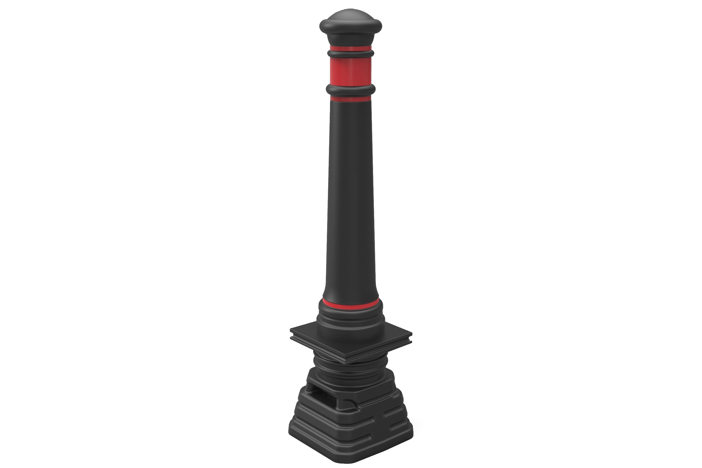 Traditionally this bollard would be made from cast iron and painted, however, this modern replacement is made from a durable plastic material that is less expensive and requires little to no maintenance.