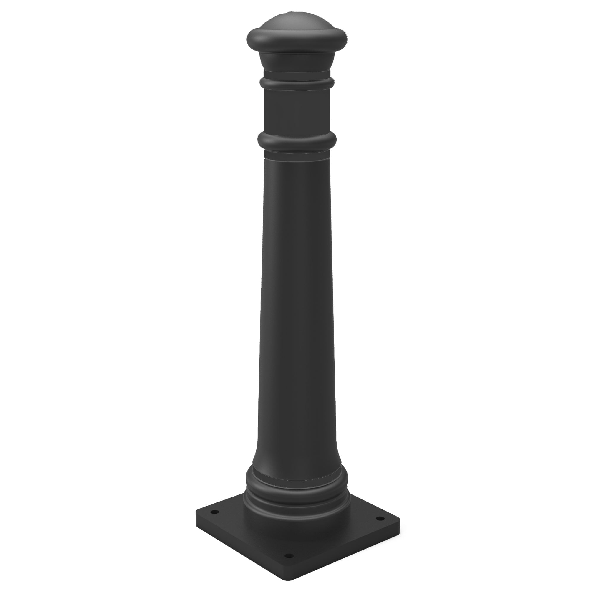 Traditionally this bollard would be made from cast iron and painted, however, this modern replacement is made from a durable plastic material that is less expensive and requires little to no maintenance.