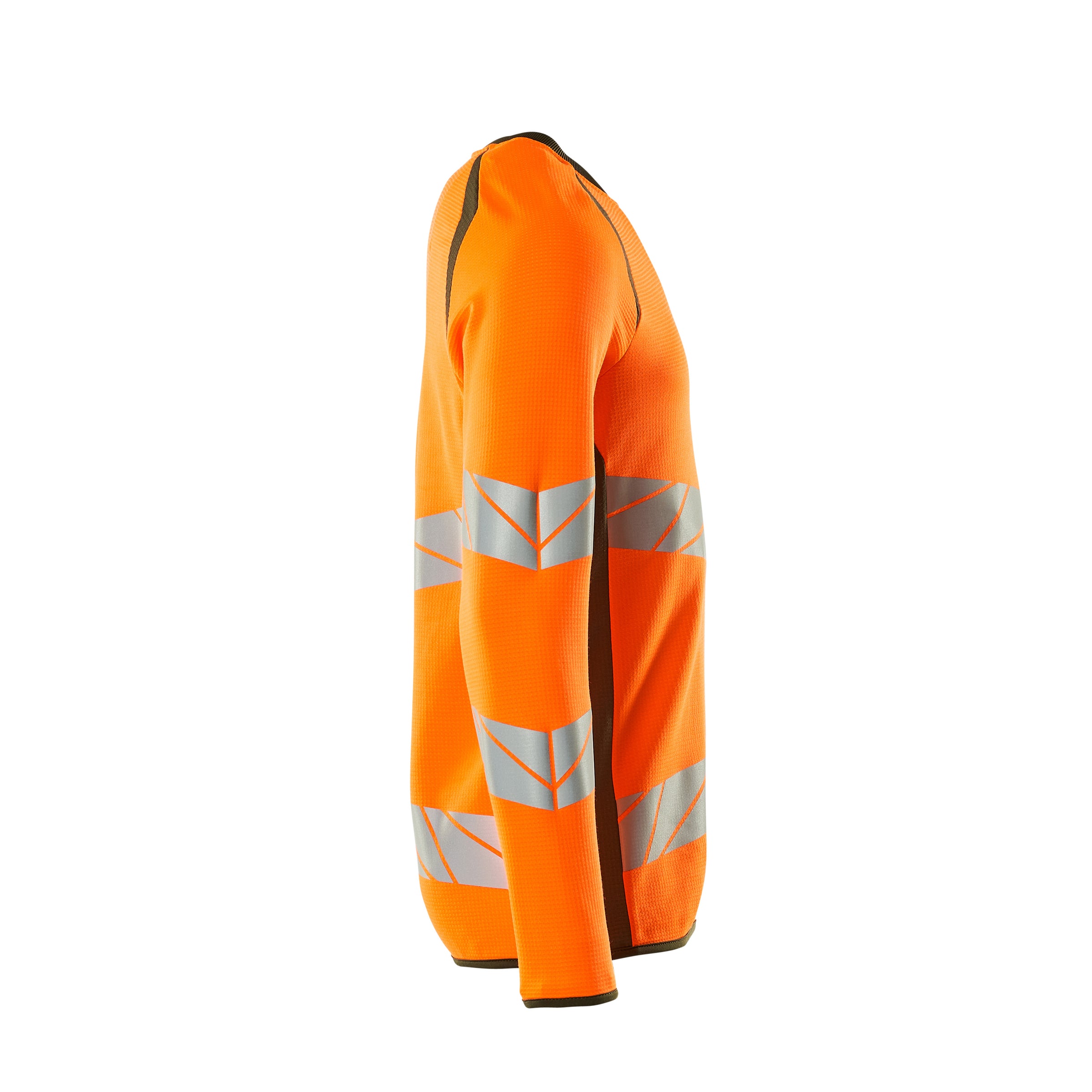 Premium. Fluorescent with oblique, transverse reflective strips. Two-toned. Modern fit. Comfortable cotton on the inside and durable stretch polyester on the outside. Square jacquard pattern. Elastic reflective strips. Round neck. Rib at neck. Internal neck yoke. Neckband. Elastic band at cuffs and waist.