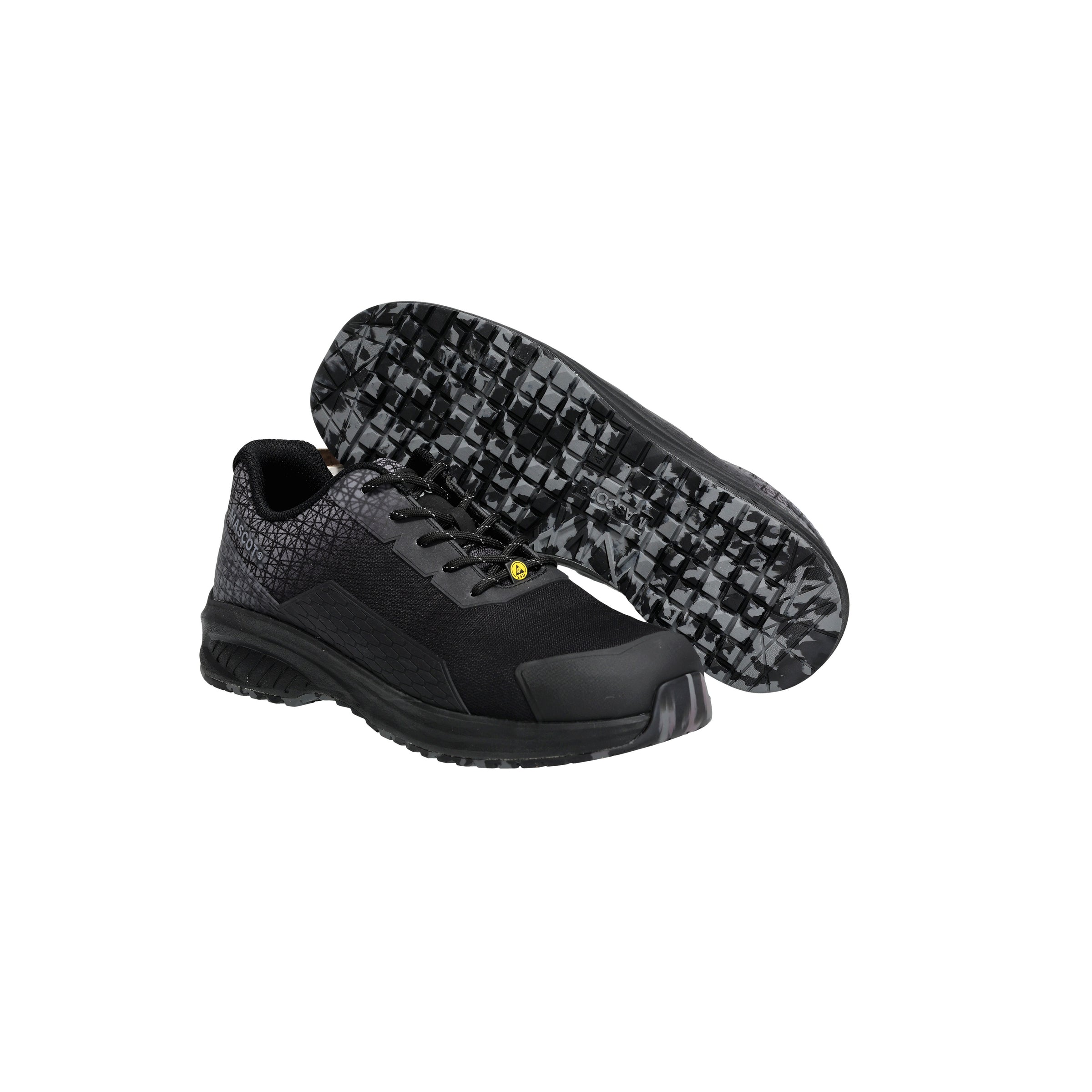 Lightweight. Breathable. Water-repellent. Lace fastening. Composite toe cap. MASCOLAYER® textile nail protection. TPU toe reinforcement. Shock-absorbing, light and flexible insole. Insoles are removable. Shock-absorbing, light and flexible EVA midsole. Sole made of nitrile rubber with extreme slip resistance. The sole is oil and petrol resistant. ESD approved to EN IEC 61340-4-3: 2018, EN 61340-5-1: 2016.