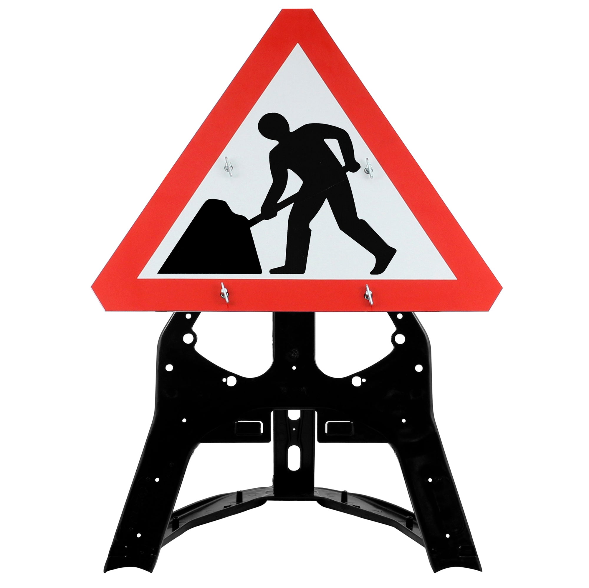 This plastic men at work Quickfit Endurasign comes complete with face and frame, it features an easy to use removable face system allowing for quick and easy swapping of faces.