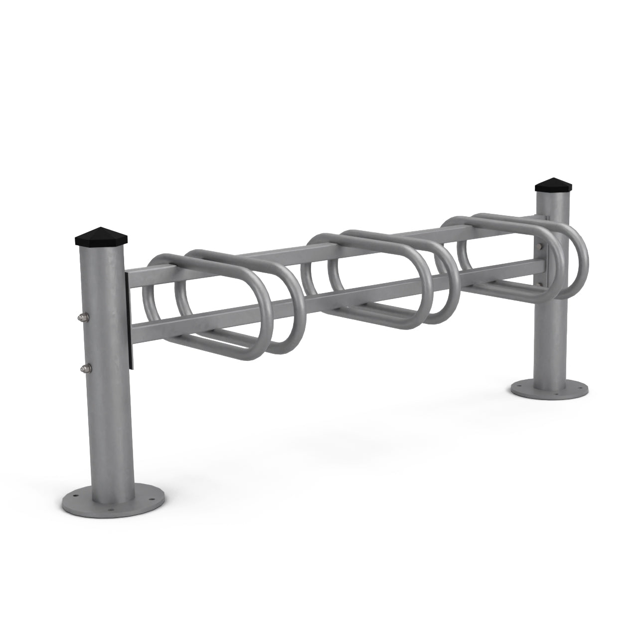 We have the Mercure bike rack in both a single or double-sided configuration. The double-sided Mercure bike rack allows bikes to be inserted from both sides, doubling its storage capacity.