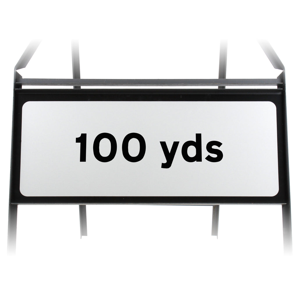 This is a '100 yards' metal supplementary plate, designed to be used to warn of road works 100 yards ahead. Designed to be used with metal 750mm road signs.