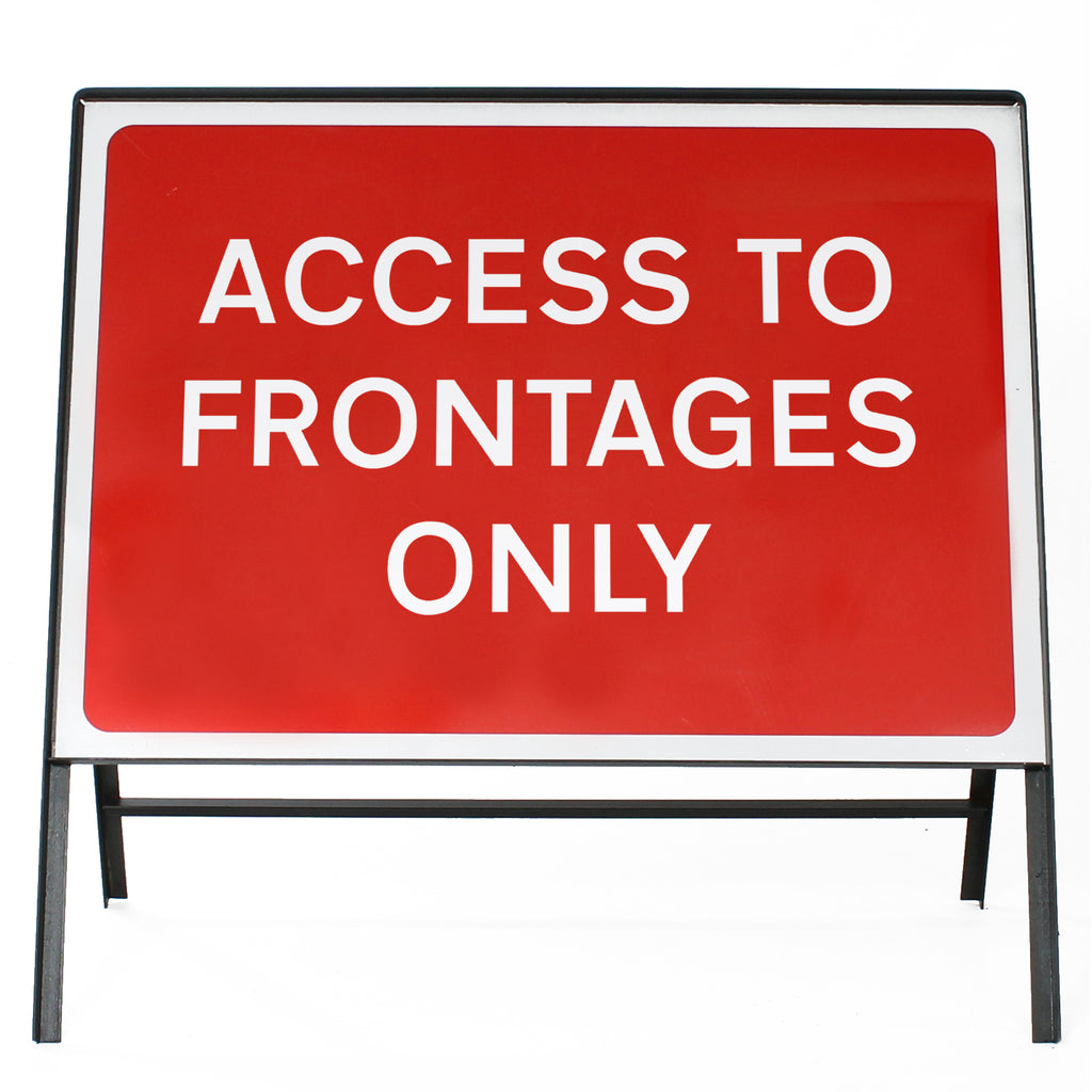 - Chapter 8 compliant Access to Frontages Only sign in a 1050x750mm size.