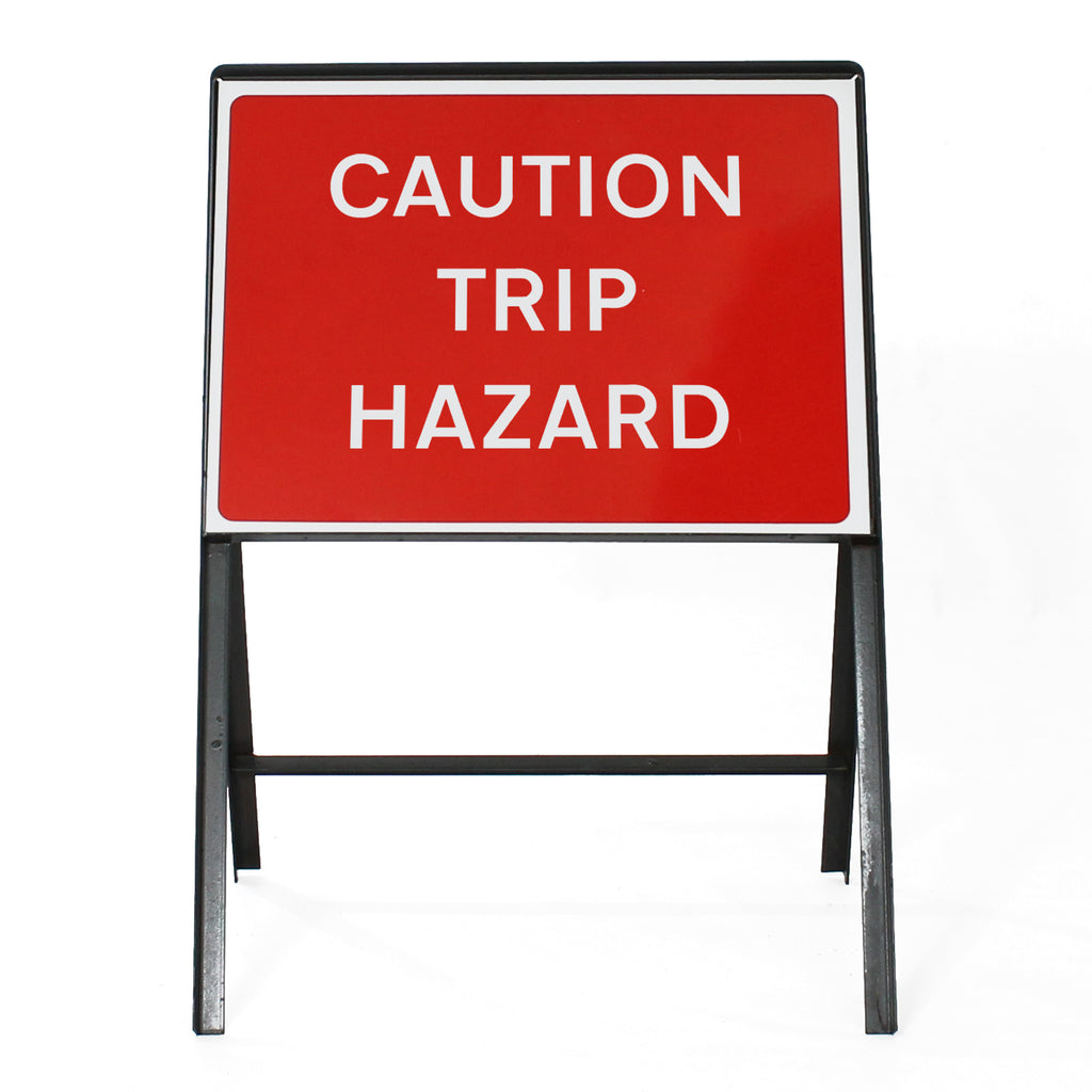 - Chapter 8 compliant Caution Trip Hazard sign in a 600x450mm size.