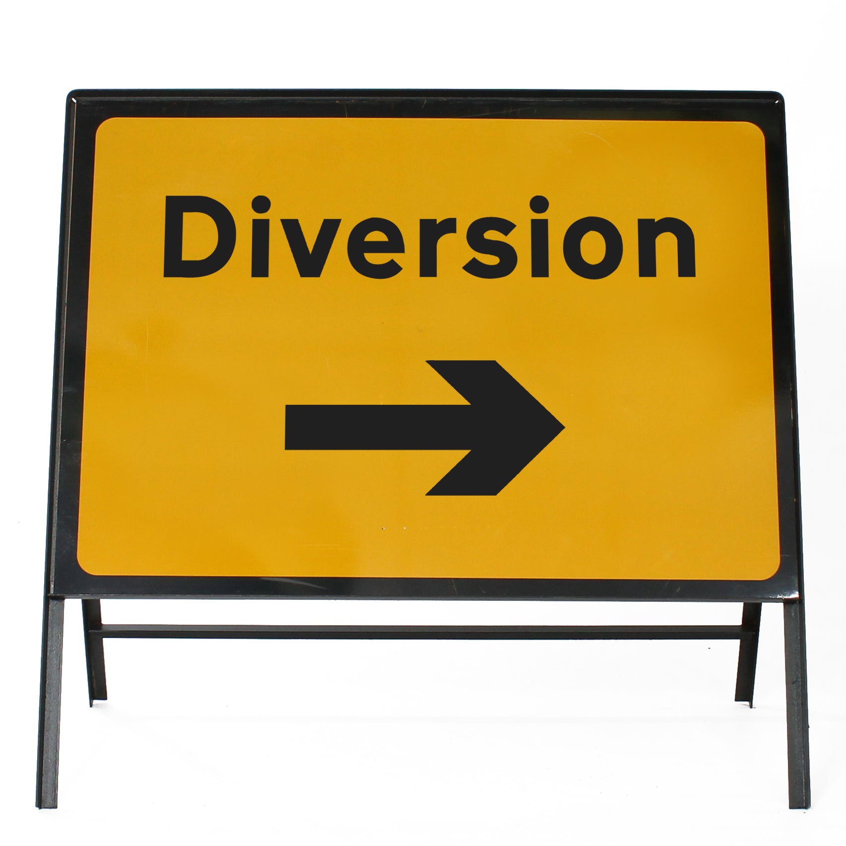 This Diversion Right Road Sign is part of our metal road sign range - the most common road sign type in the UK.