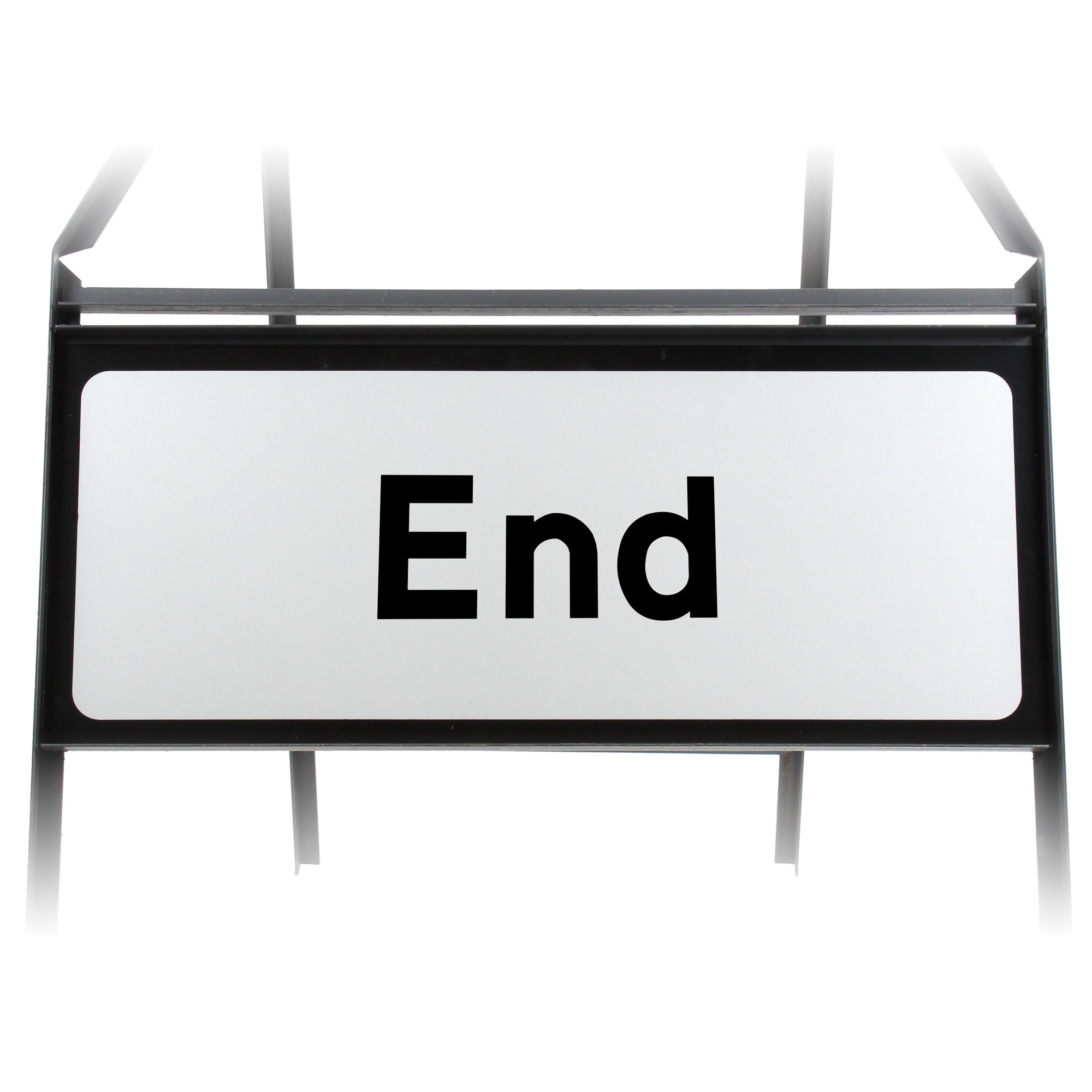 A 'End' supplementary plate for the 750mm metal road sign range. Usually used to indicate the position at which the road works have ended.
