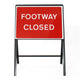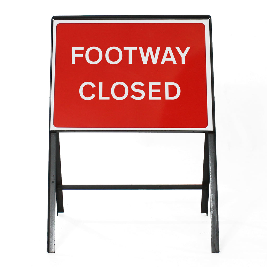 - Chapter 8 compliant Footway Closed sign in a 600x450mm size.