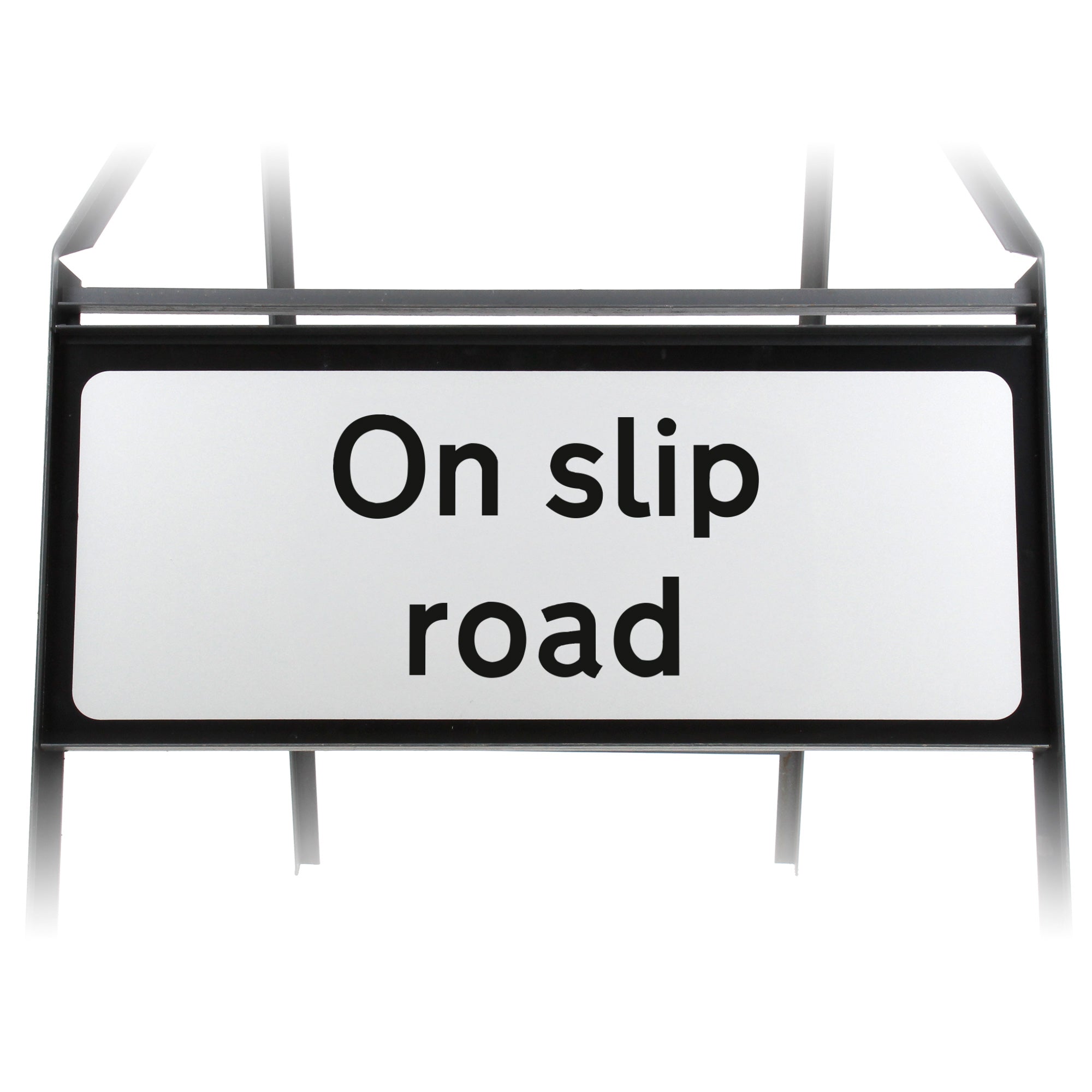 A supplementary plate 'On Slip Road', designed to fit on to the 750mm metal road sign range.