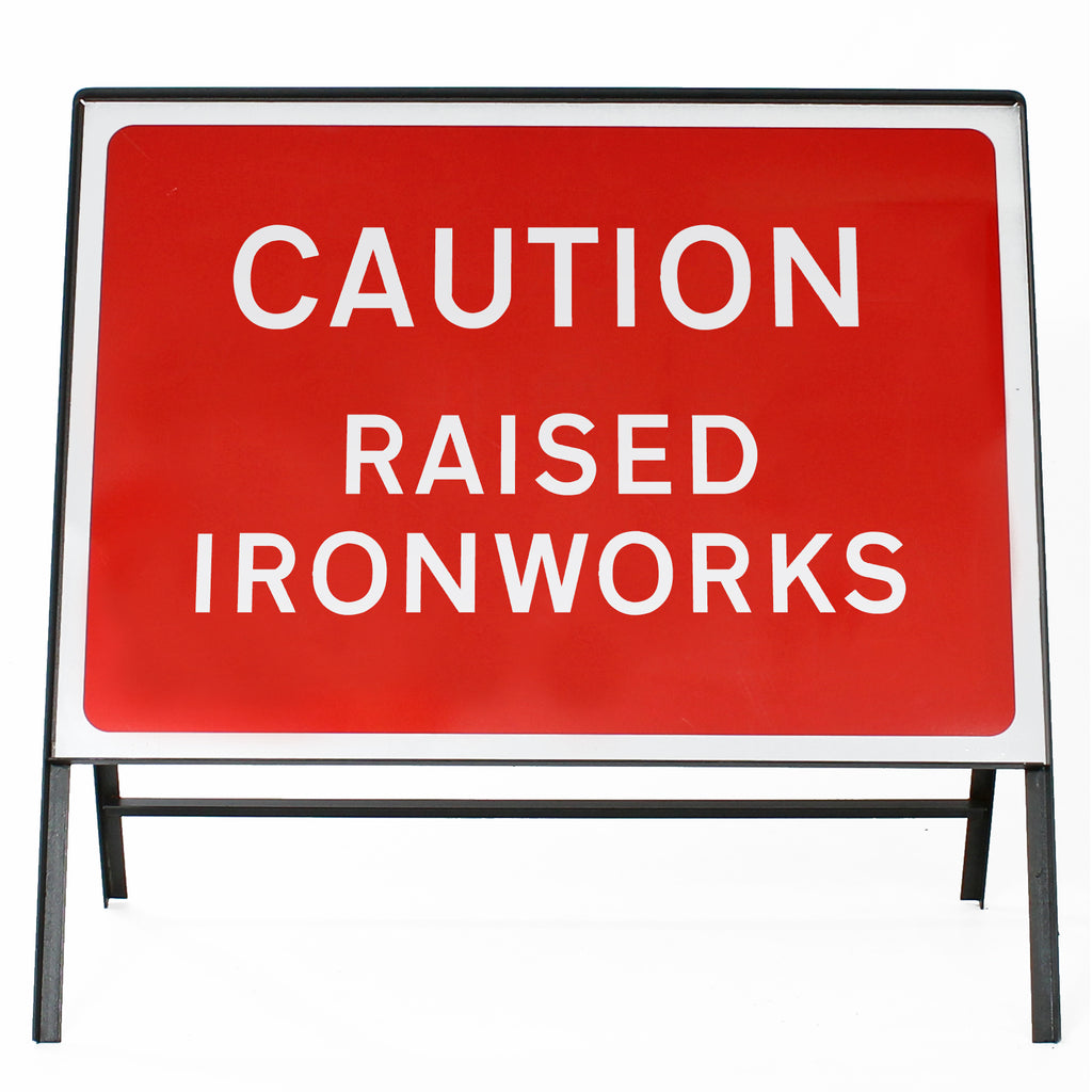 Caution Raised Ironworks Road Sign - 1050x750mm Metal Sign