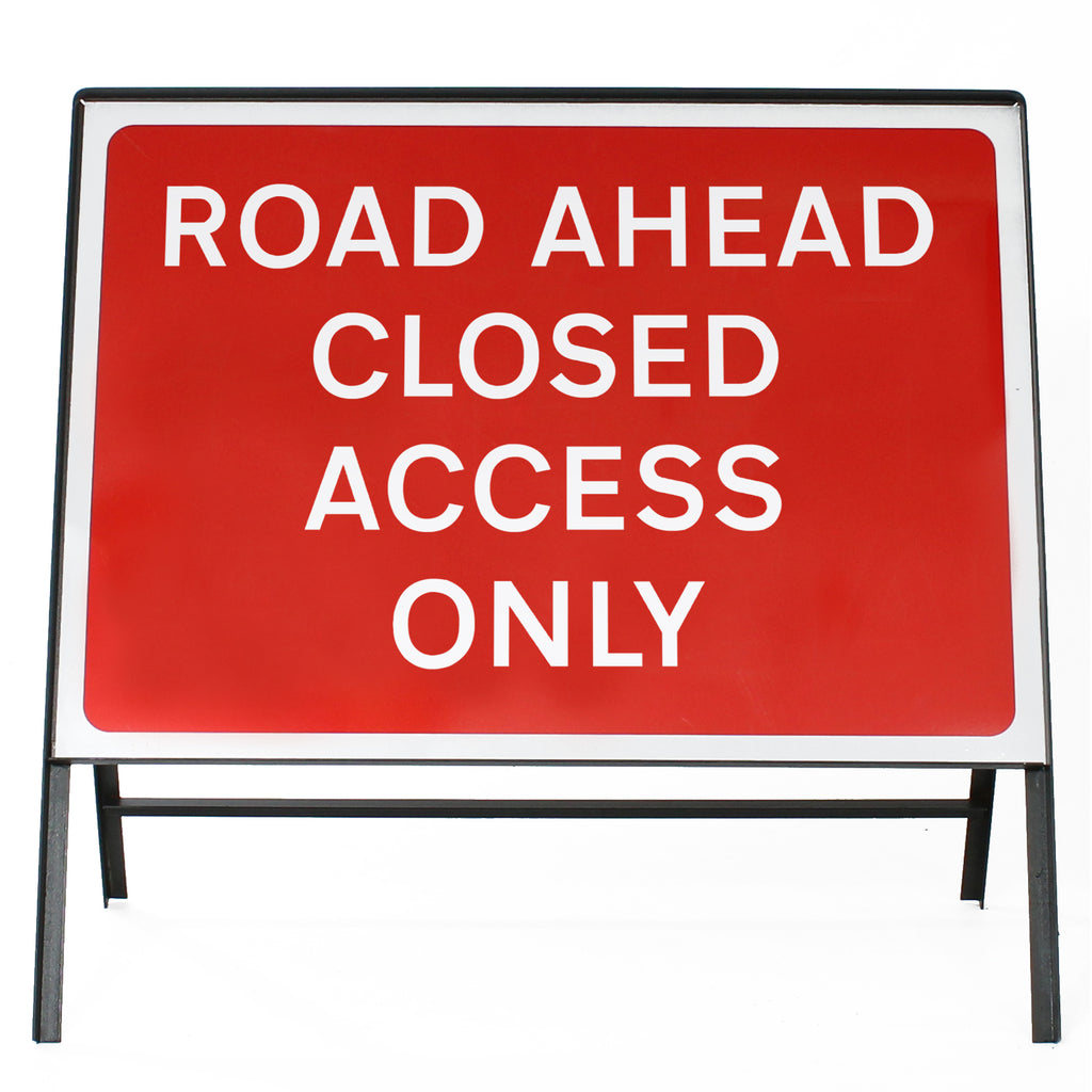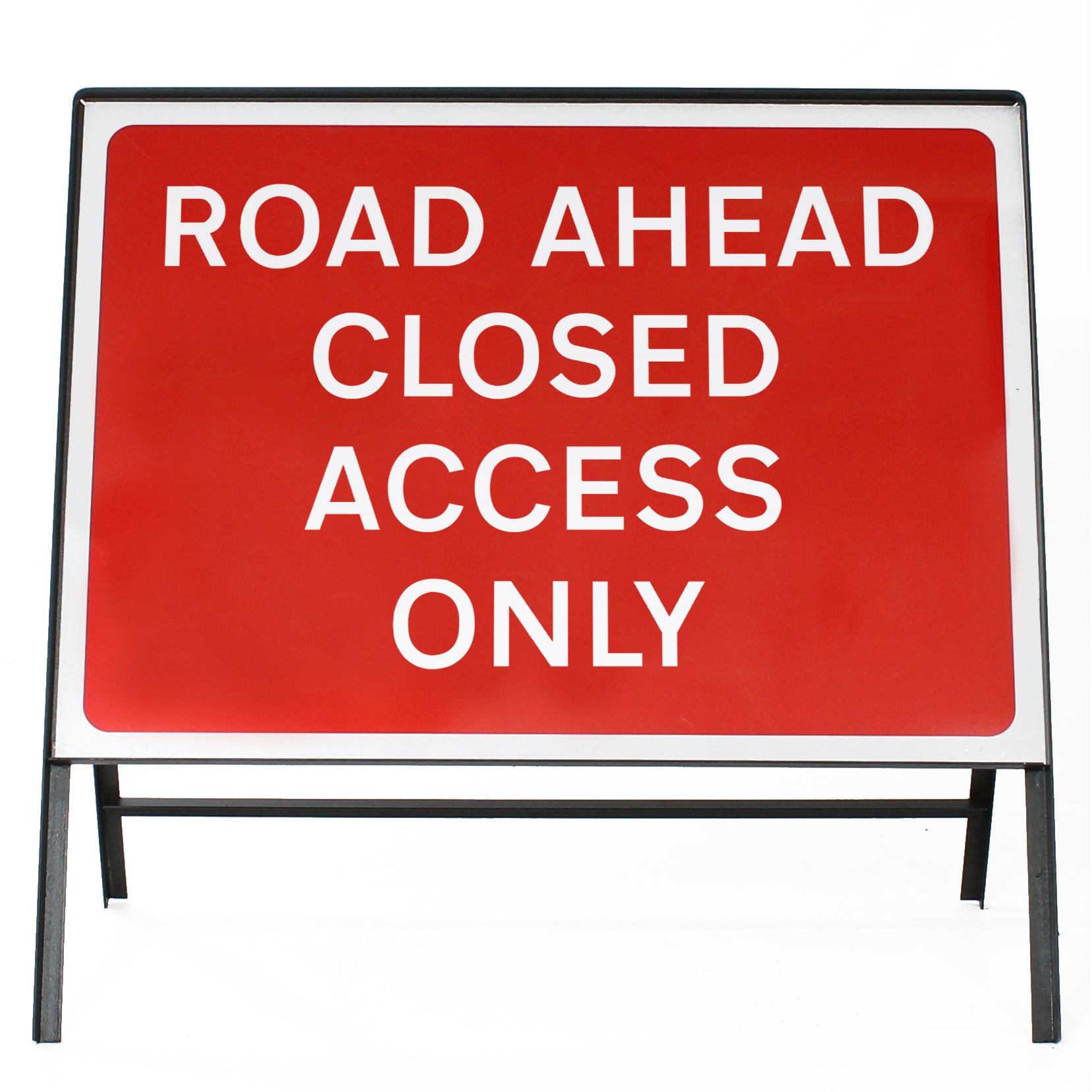 - Chapter 8 compliant Road Ahead Closed Access Only sign in a 1050x750mm size.