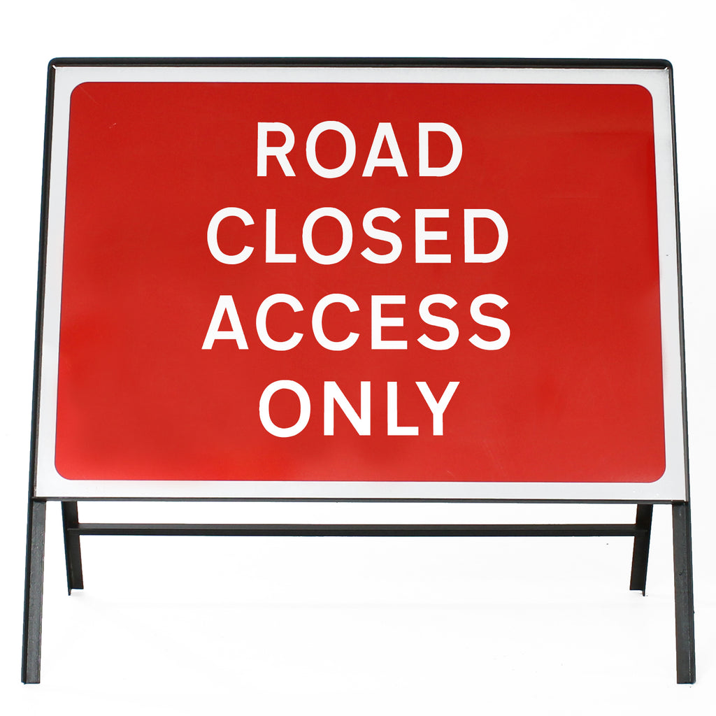 - Chapter 8 compliant Road Closed Access Only sign in a 1050x750mm size.