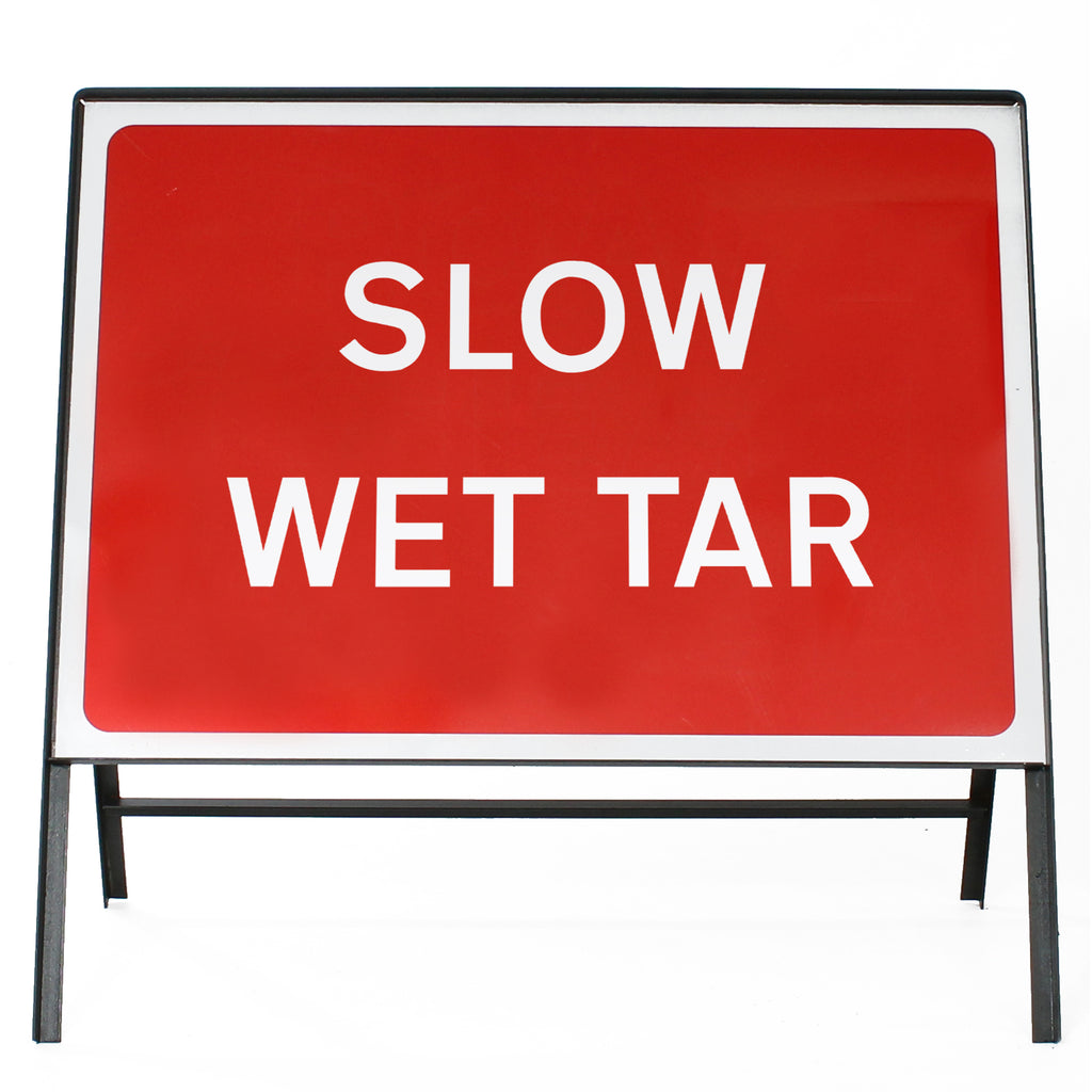 - Chapter 8 compliant Slow Wet Tar sign in a 1050x750mm size.