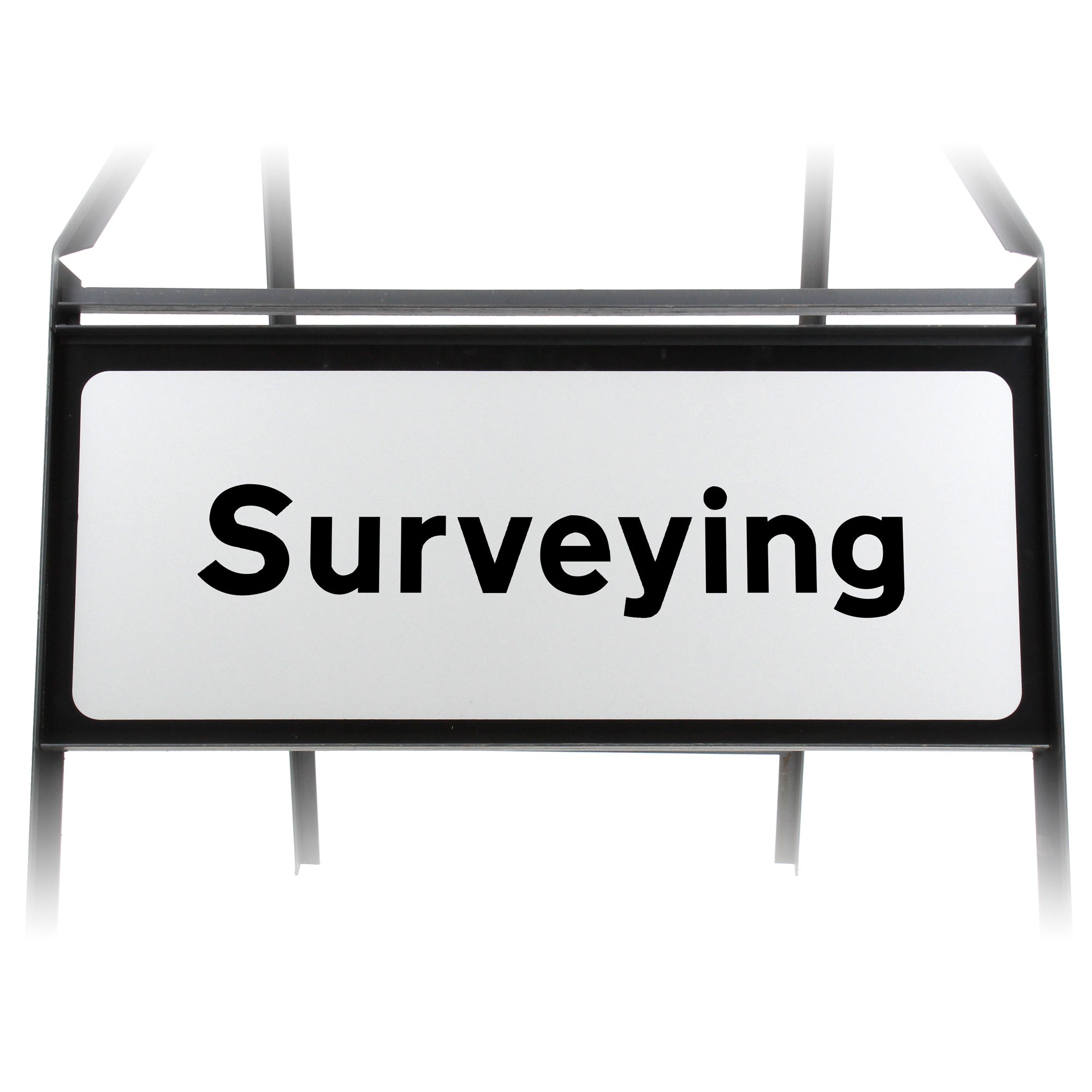 A 'Surveying' supplementary plate to indicate that surveying is being carried out. Designed to fit on the 750mm metal road sign range.