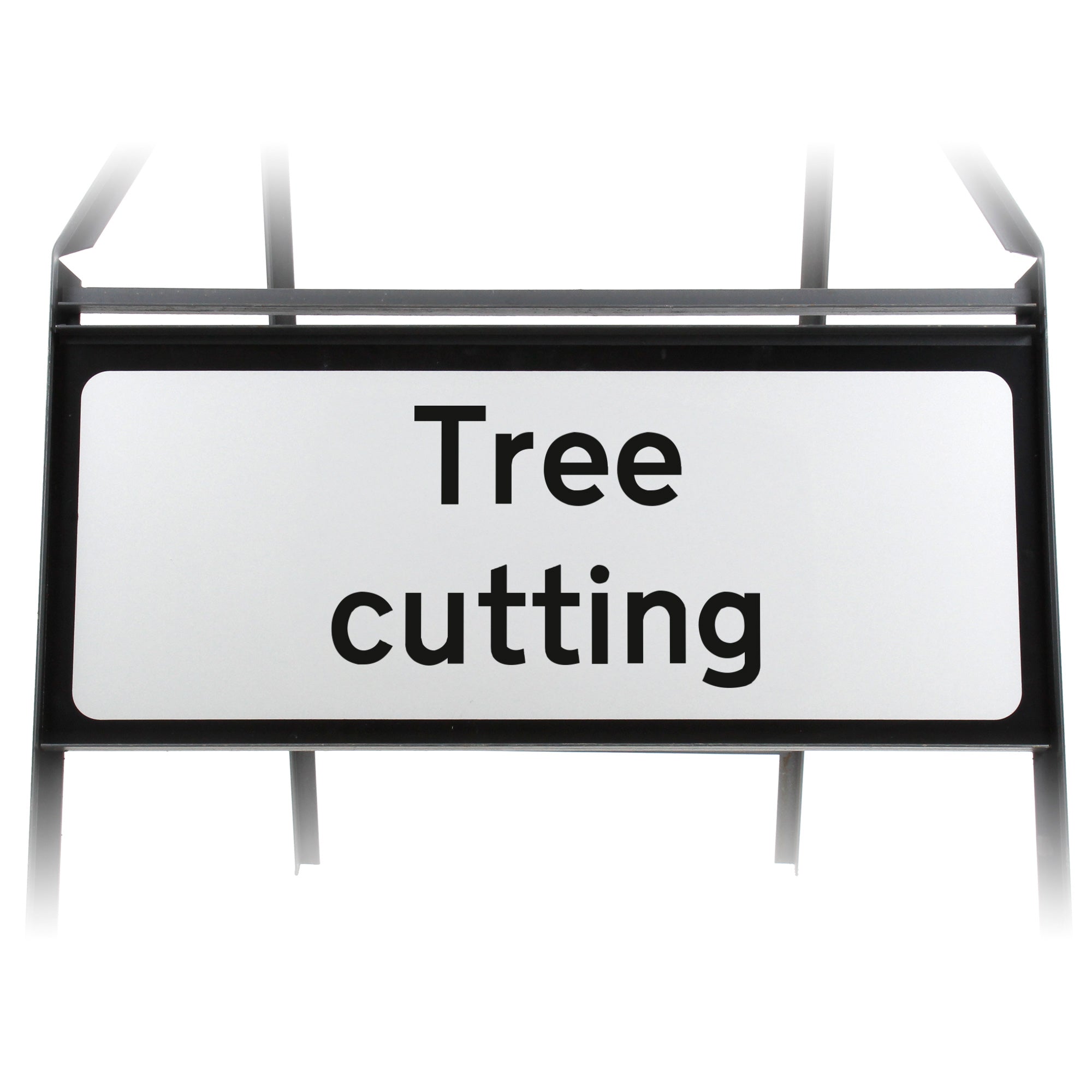 This is a 'Tree Cutting' Q-Sign supplementary plate, normally used to indicate that tree cutting / pruning is being carried out.