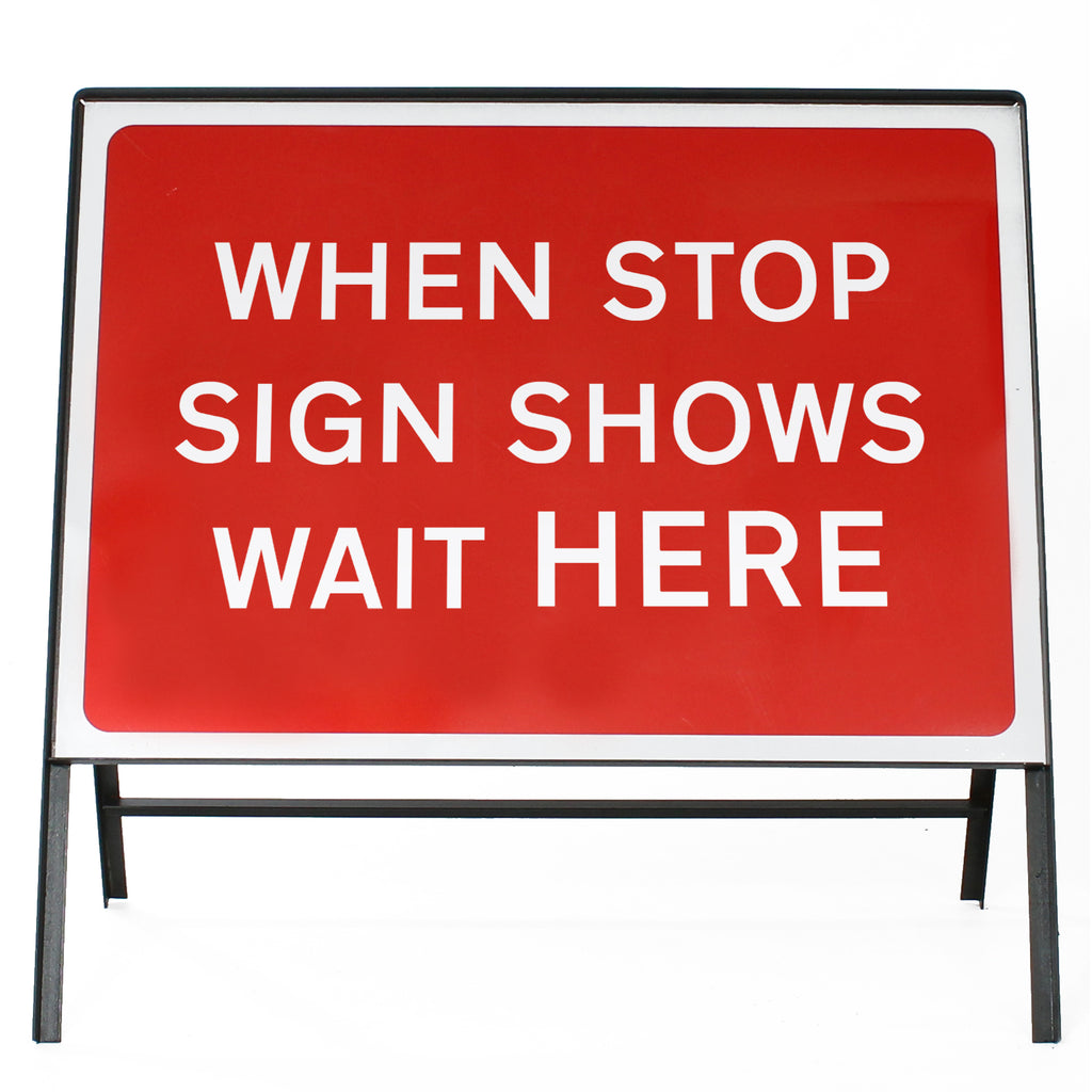 - Chapter 8 compliant When Stop Sign Shows Wait Here sign in a 1050x750mm size.