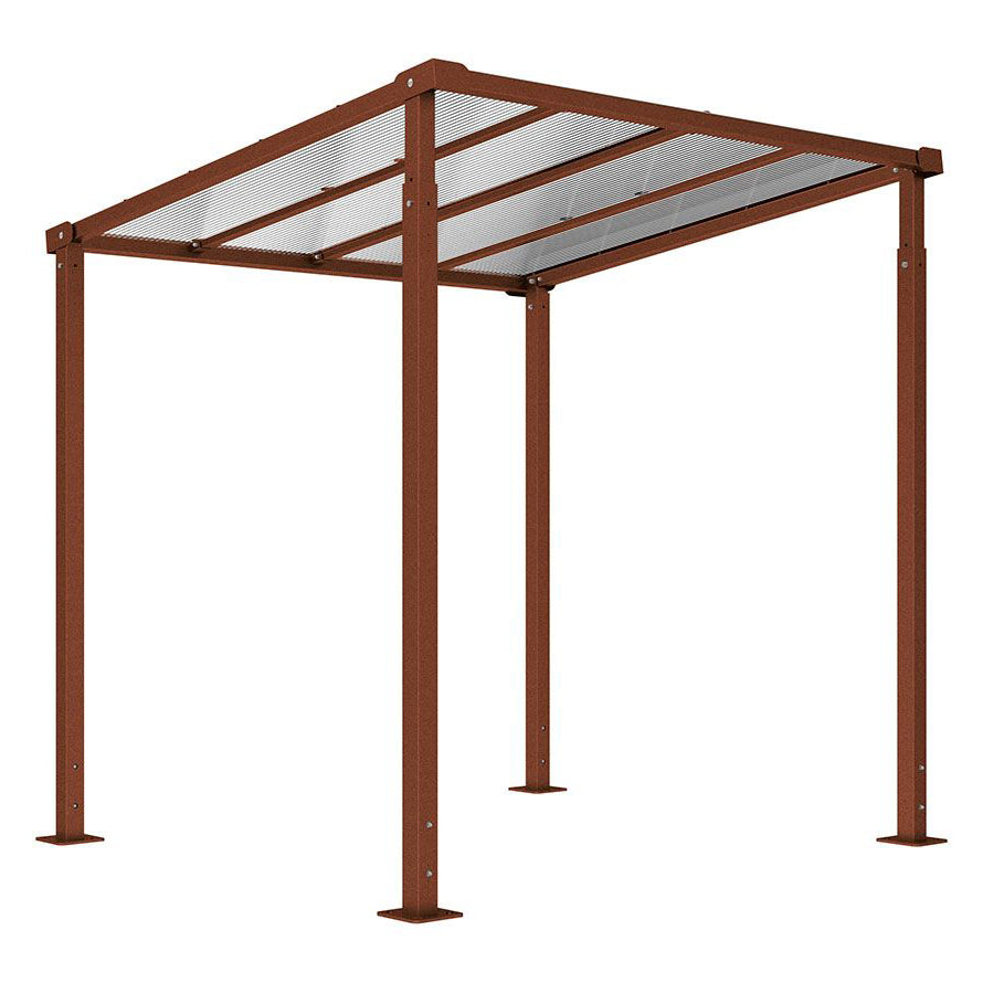 The basic shelter includes the roof panelling and main steel frame but does not include side and rear cladding panels.