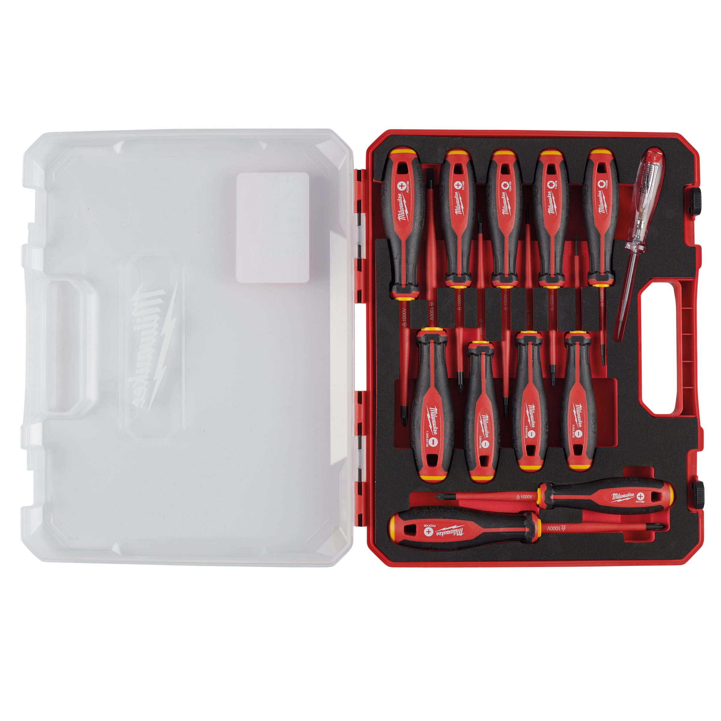 Milwaukee 12 Piece Tri-Lobe VDE PZ PH SL TX Screwdriver Set Inc. Hard Case - 4932479095