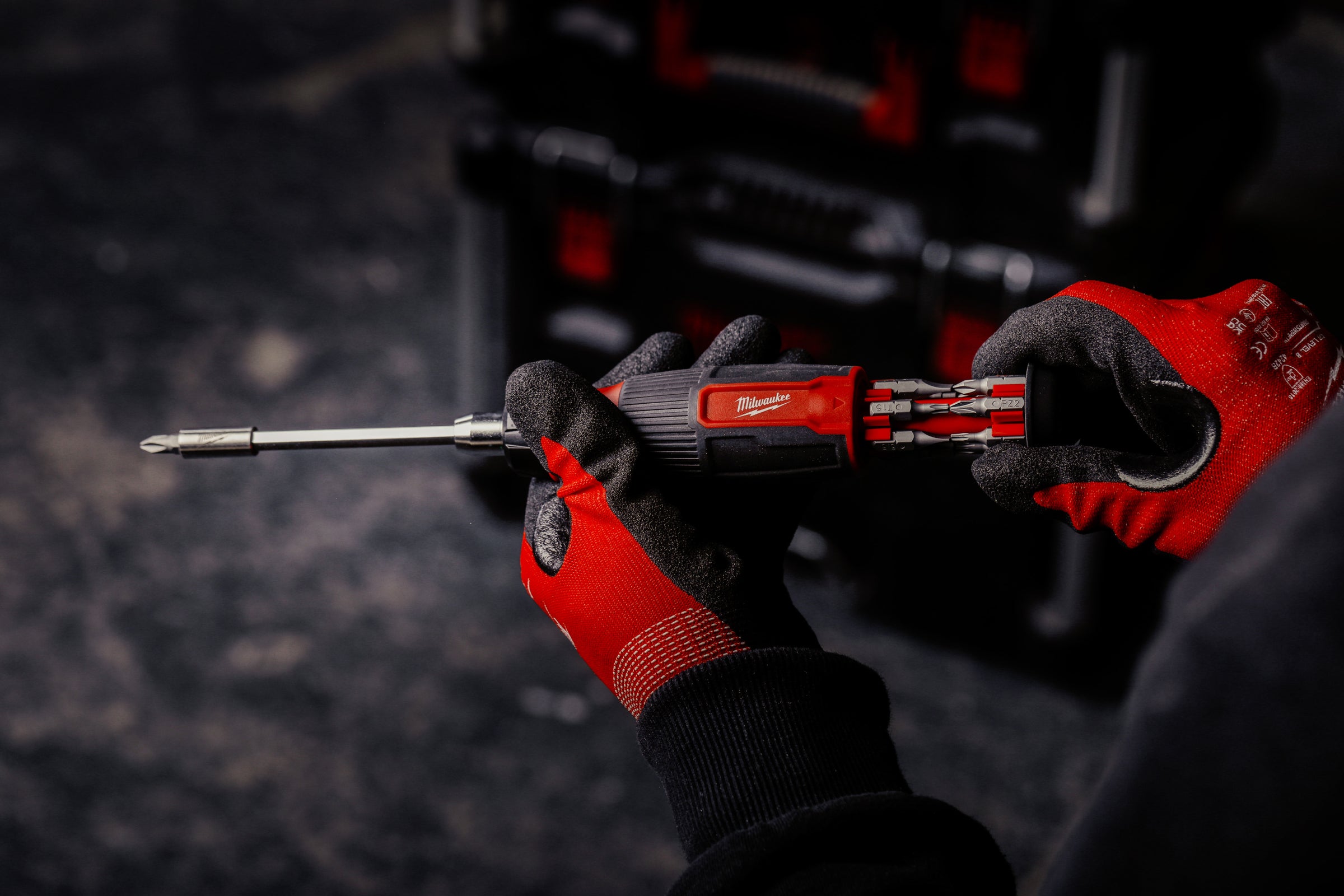 • In-handle bit storage for quick and easy bit access.