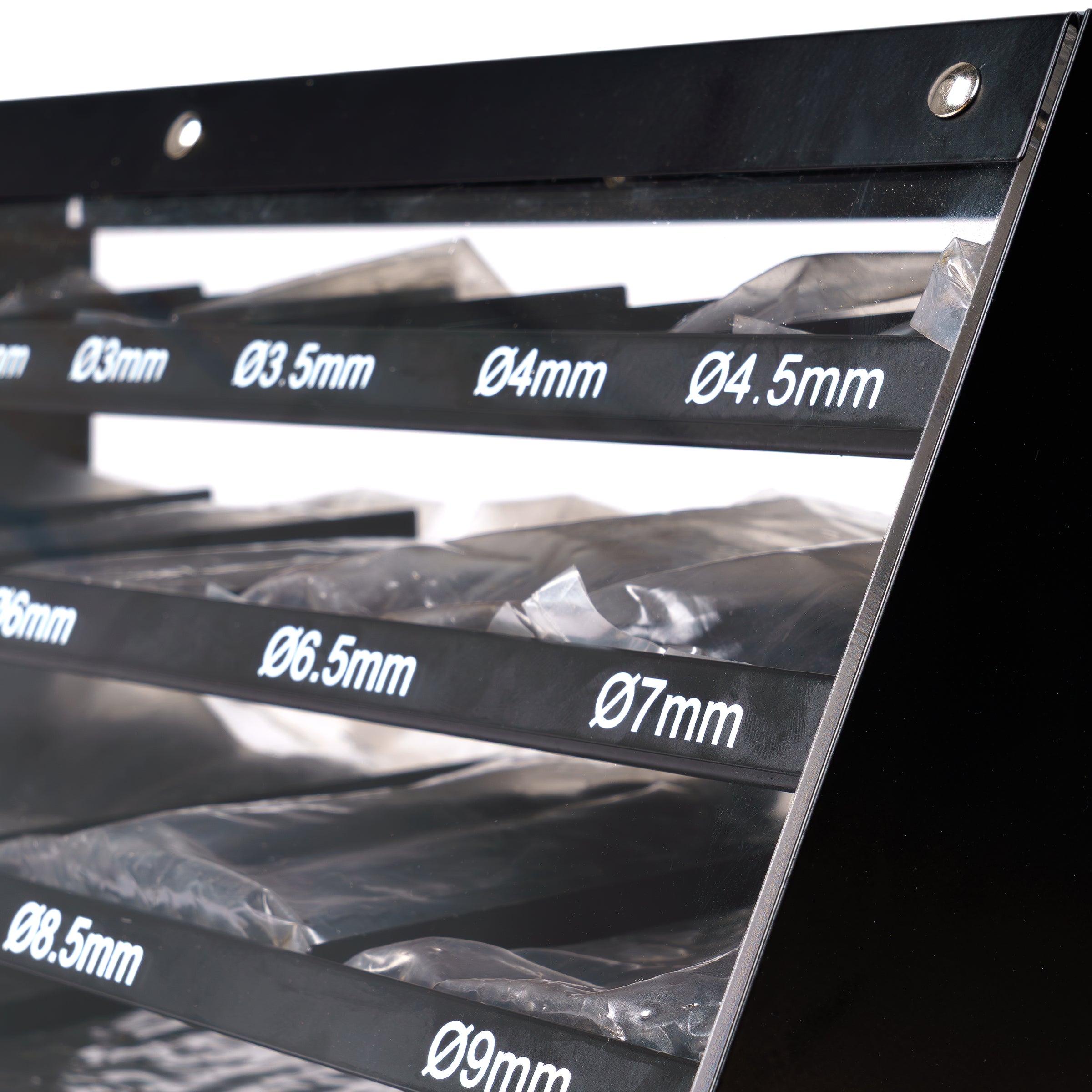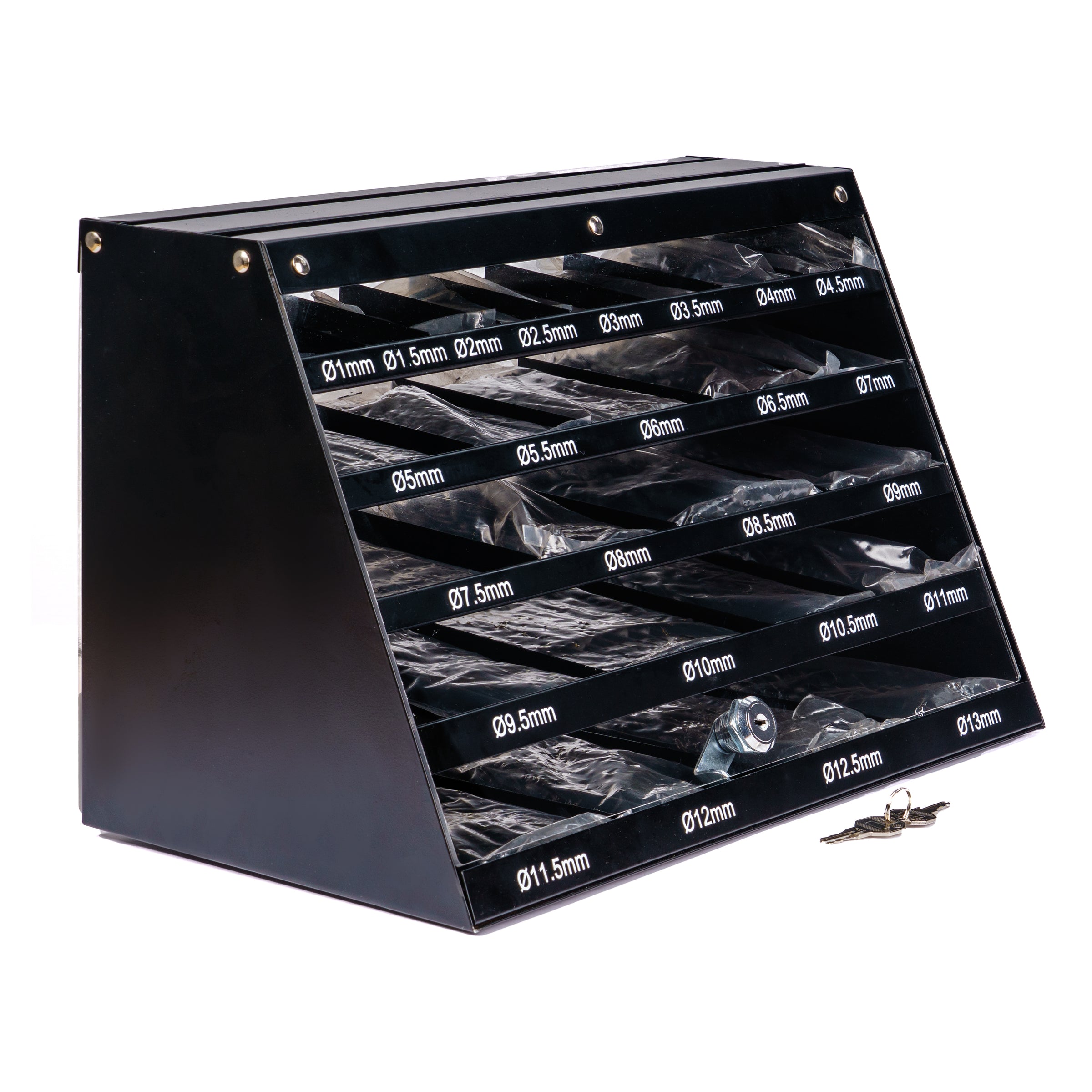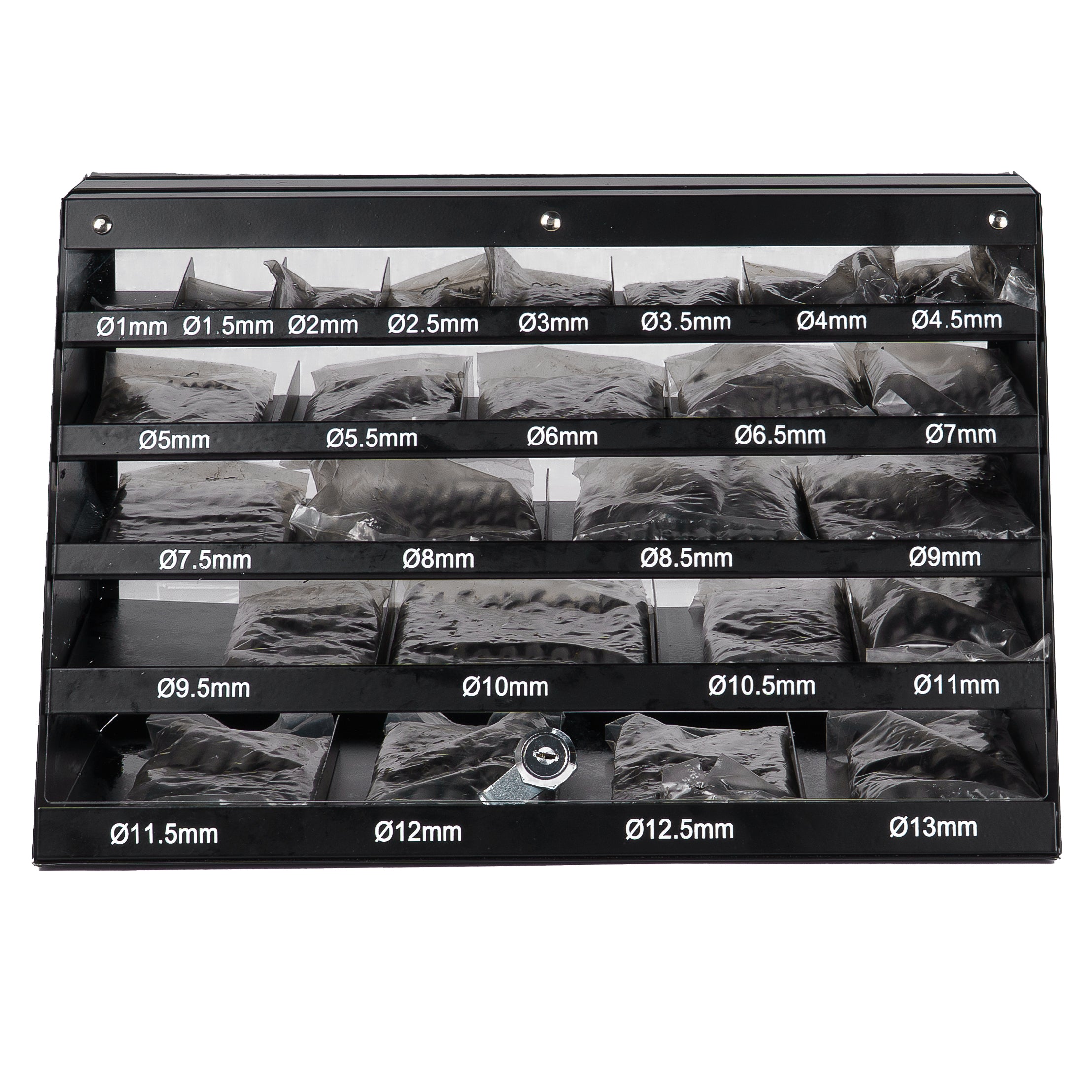 Extremely versatile, this comprehensive set includes a wide assortment of sizes: 20 x 1mm, 20 x 1.5mm, 20 x 2mm, 20 x 2.5mm, 20 x 3mm, 20 x 3.5mm, 20 x 4mm, 20 x 4.5mm, 20 x 5mm, 20 x 5.5mm, 20 x 6mm, 20 x 6.5mm, 10 x 7mm, 10 x 7.5mm, 10 x 8mm, 20 x 8.5mm, 10 x 9mm, 5 x 9.5mm, 10 x 10mm, 5 x 10.5mm, 5 x 11mm, 5 x 11.5mm, 5 x 12mm, 5 x 12.5mm, 5 x 13mm.... and 2 Keys.