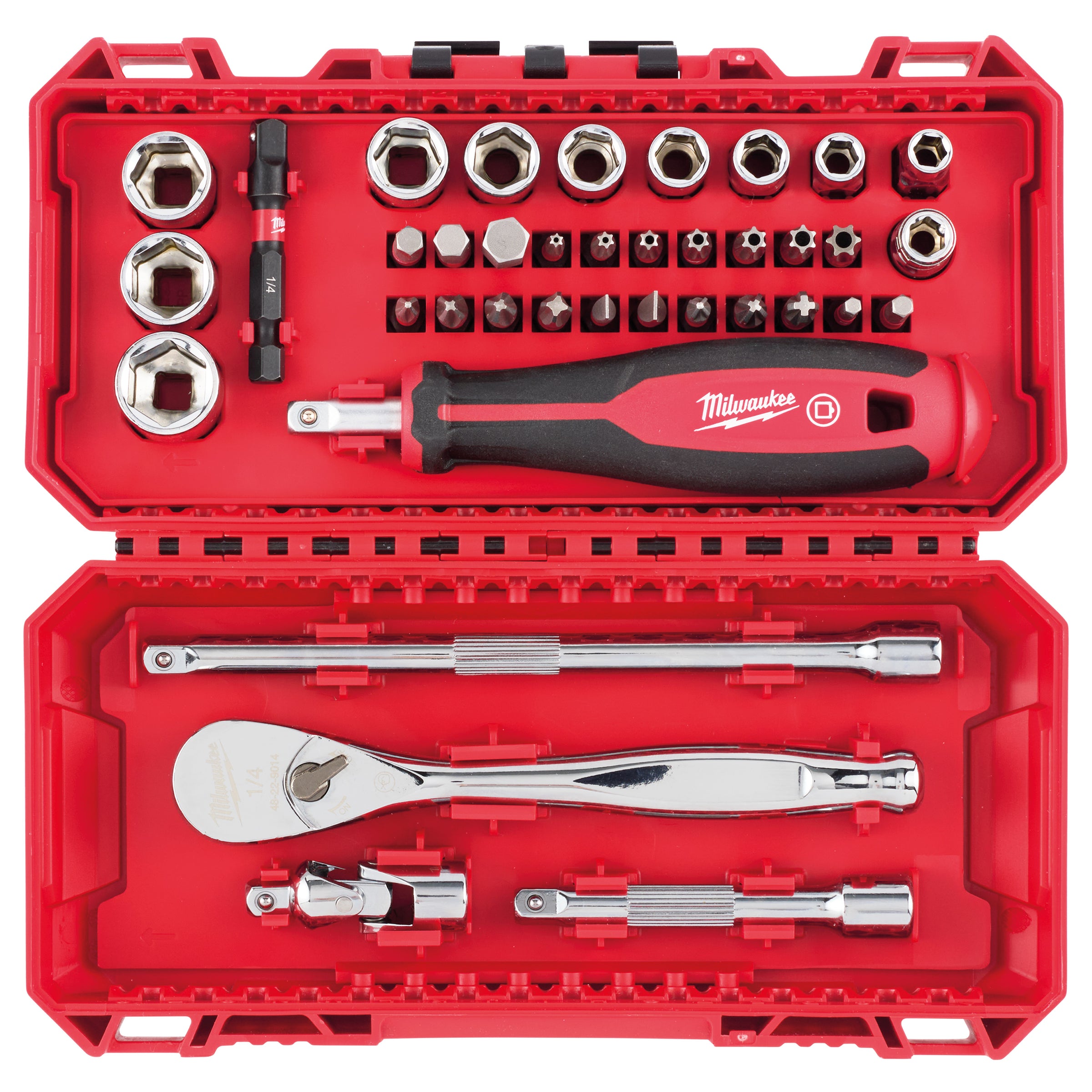 Milwaukee 38 Piece 1/4" Ratchet, Driver & Socket Set Inc. Packout Case - 4932498381