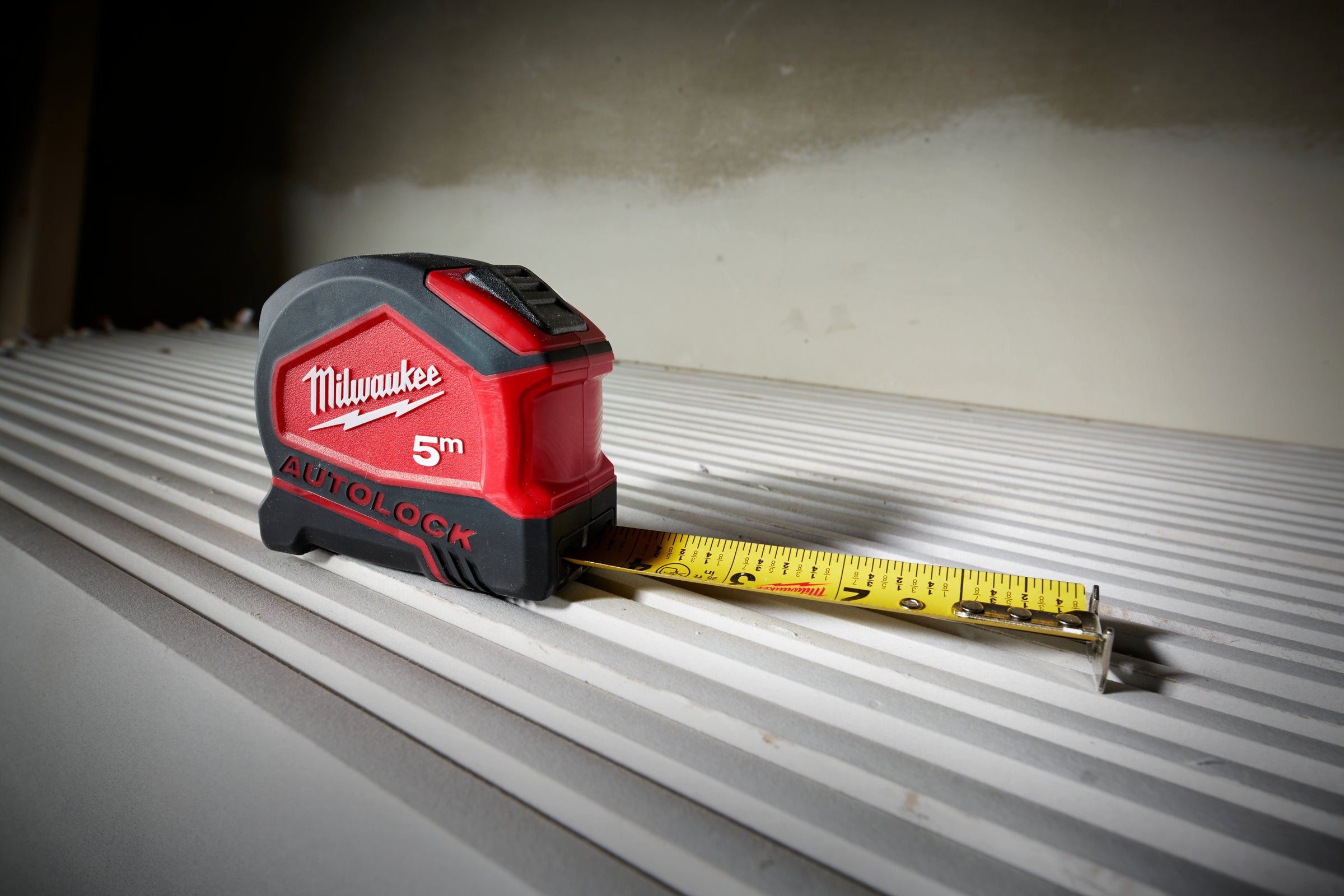 This budget-friendly 5m tape measure is great for the home DIY enthusiast who wants one that gets the job done without being as costly as pro-grade measures. It has an auto-lock system automatically holding the tape out of the housing. To retract the tape, the button on the top of the measure is pressed, allowing it to retract into the housing automatically.