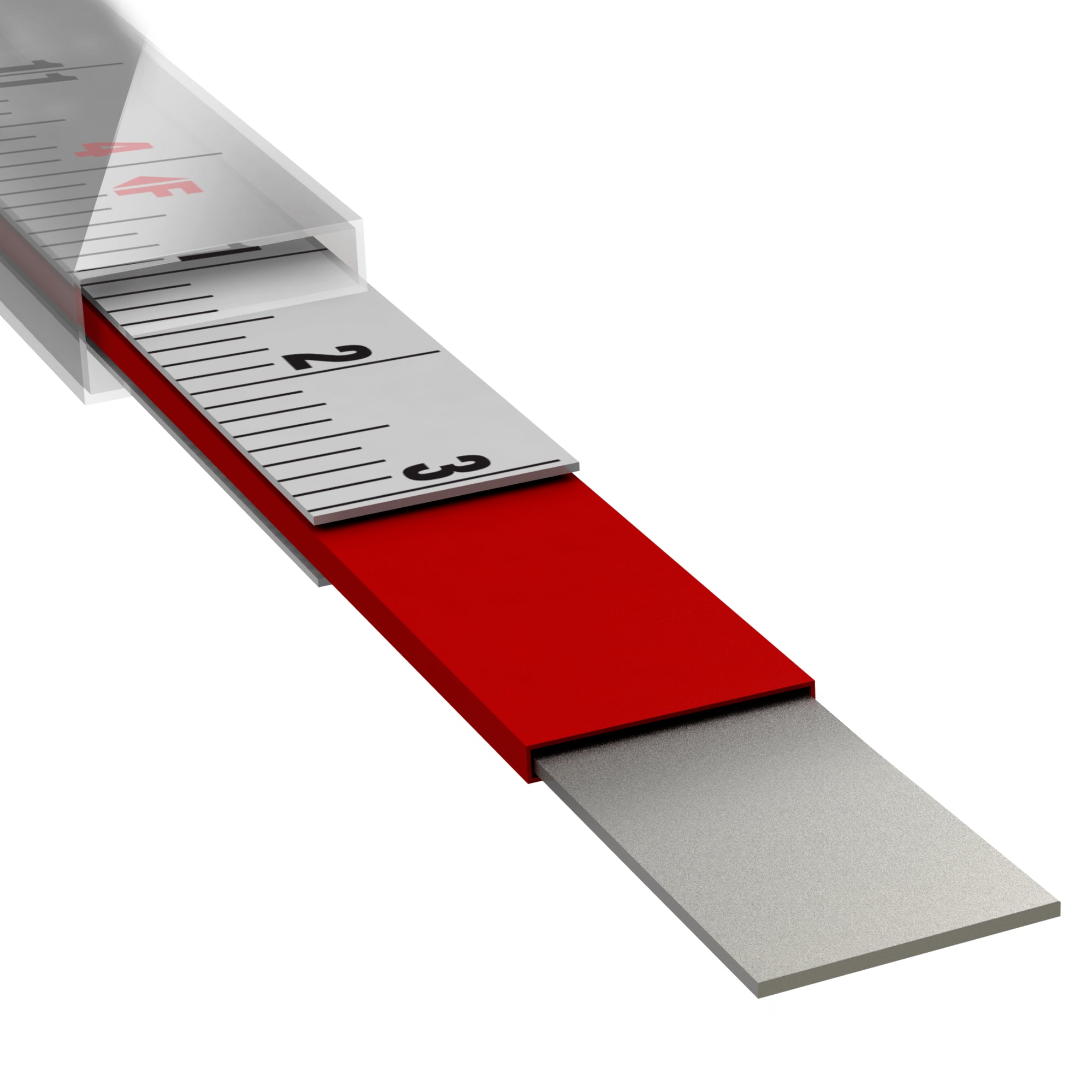 - 2 sided scale printing. Metric measurements shown on the top side and imperial (inches and feet) on the underside of the blade.