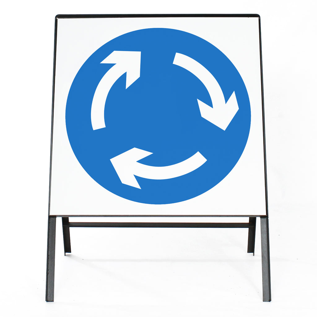 - Chapter 8 compliant Mini Roundabout sign in a 750mm square size.