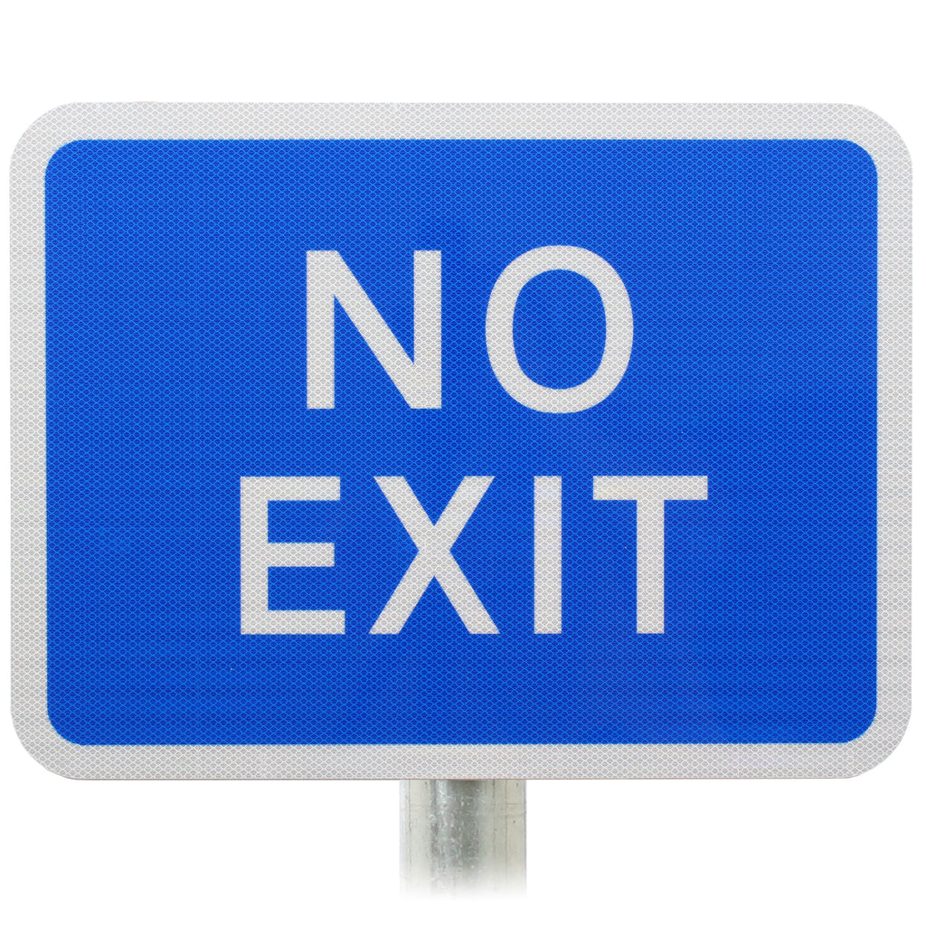 At sites with multiple entrances and exits a ‘No Exit’ sign (diagram 835) is ideal for preventing people from trying to leave via the entrance.