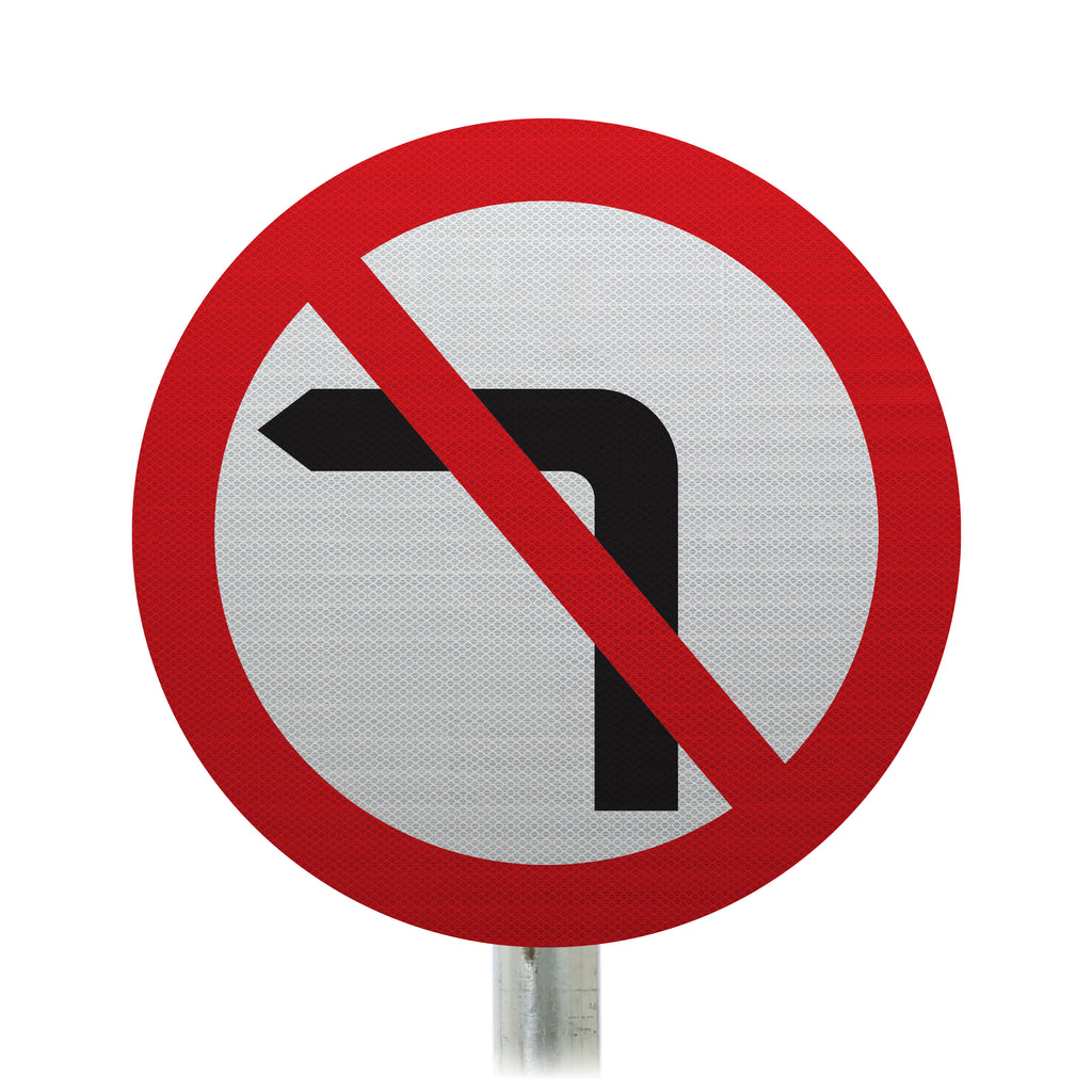The sign can be supplemented with an exception plate such as 'Except buses and cycles’, ‘Give way to oncoming vehicles’ or time periods to indicate when turning left is not allowed. Refer to paragraph 4.2.9 in chapter 3 of the Traffic Signs Manual (Found on our regulations page) to find additional information on compatible supplementary sign faces.