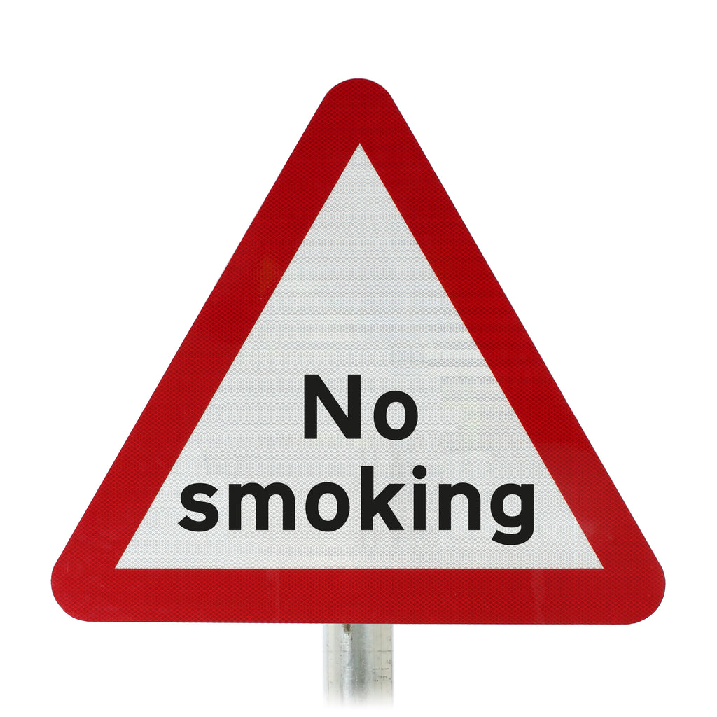 The "No Smoking" sign to diagram 554D should only be used temporarily where smoking causes a hazard to the environment, such as where there is a gas leak, flammable chemicals or maintenance to the road.