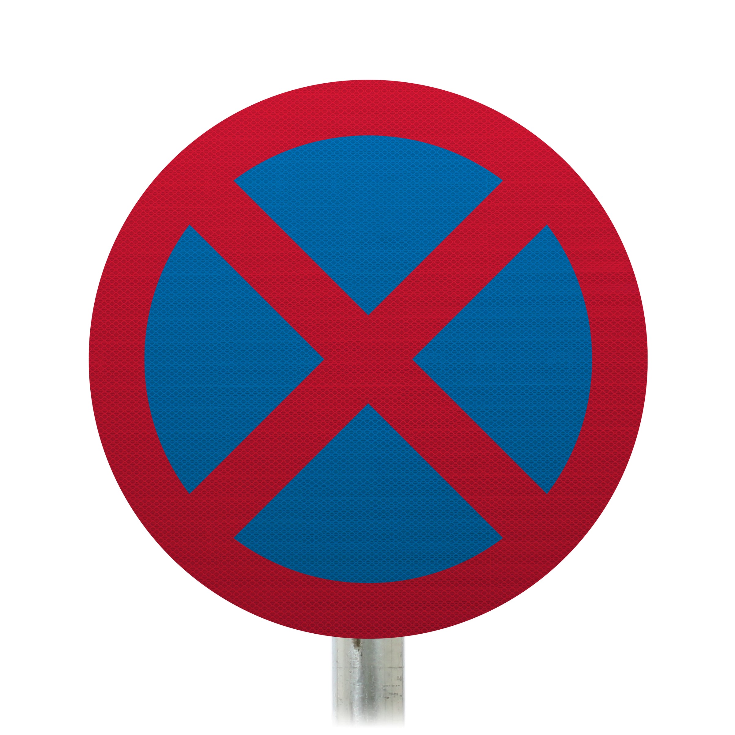 An area on a main carriageway marked by the red cross of diagram 642 means stopping is strictly prohibited due to the speed and design of the road, this sign is otherwise known as the 'Clearway Sign'.