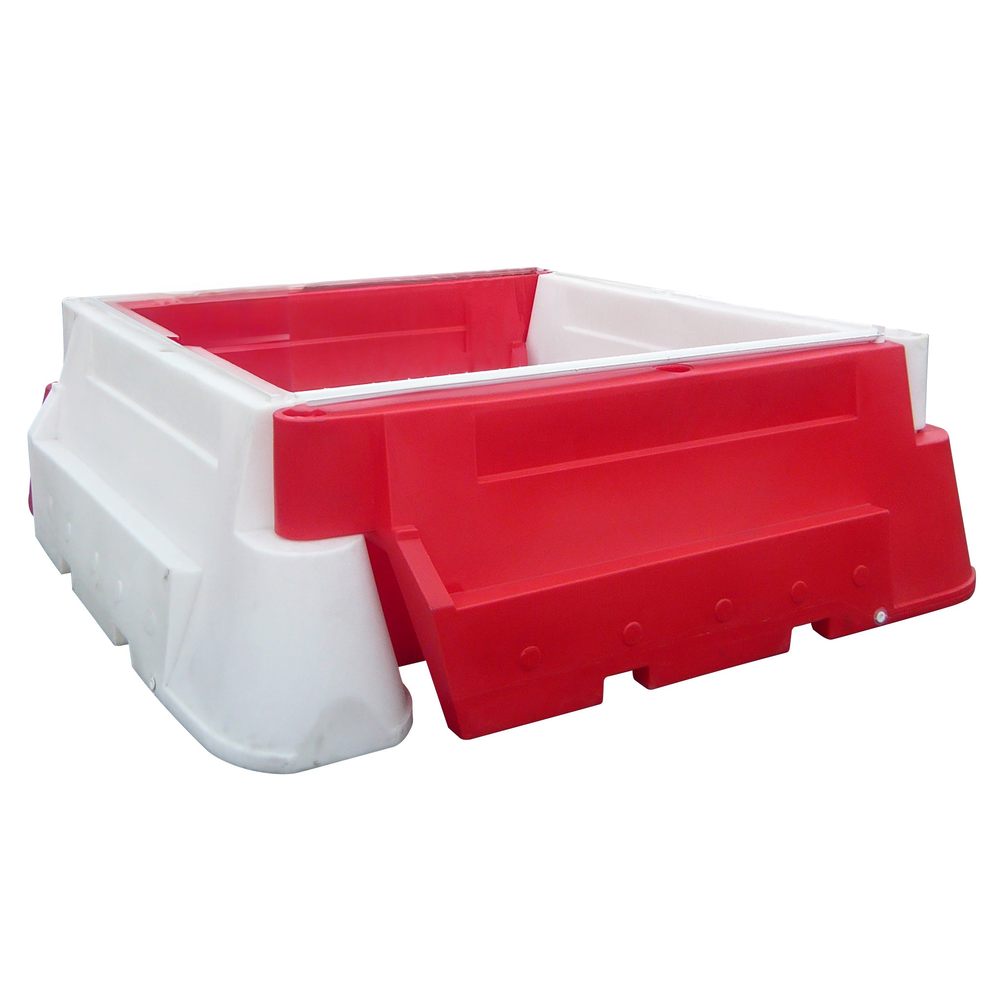 Each barrier section weighs only 25 kg when empty, meaning they can be moved by hand if needed. Forklift slots at the barrier's base allow larger quantities of the Novus barrier to be moved with lifting equipment when needed. Once filled with ballast water, each section weighs in at 180kg, ensuring it stands its ground even in windy conditions. Available in red and white, each section contrasts against the next; for added visibility, you can purchase the Novus barrier with reflective strips that show up in car headlights.