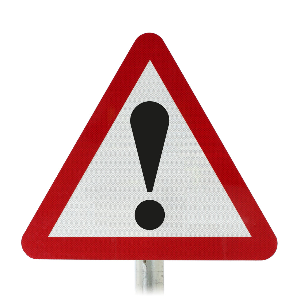 The exclamation mark sign diagram 562 is without a specific message on its own as it is for use only with a supplementary plate. Its use is usually temporary, to alert of a new hazard in the road, however where it is difficult to sign for a permanent hazard such as a ‘Hidden Dip’ it is permitted for permanent use until the hazard is removed.