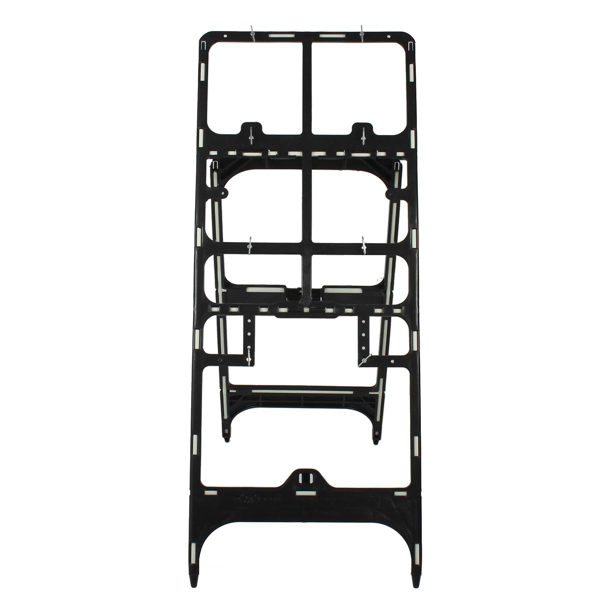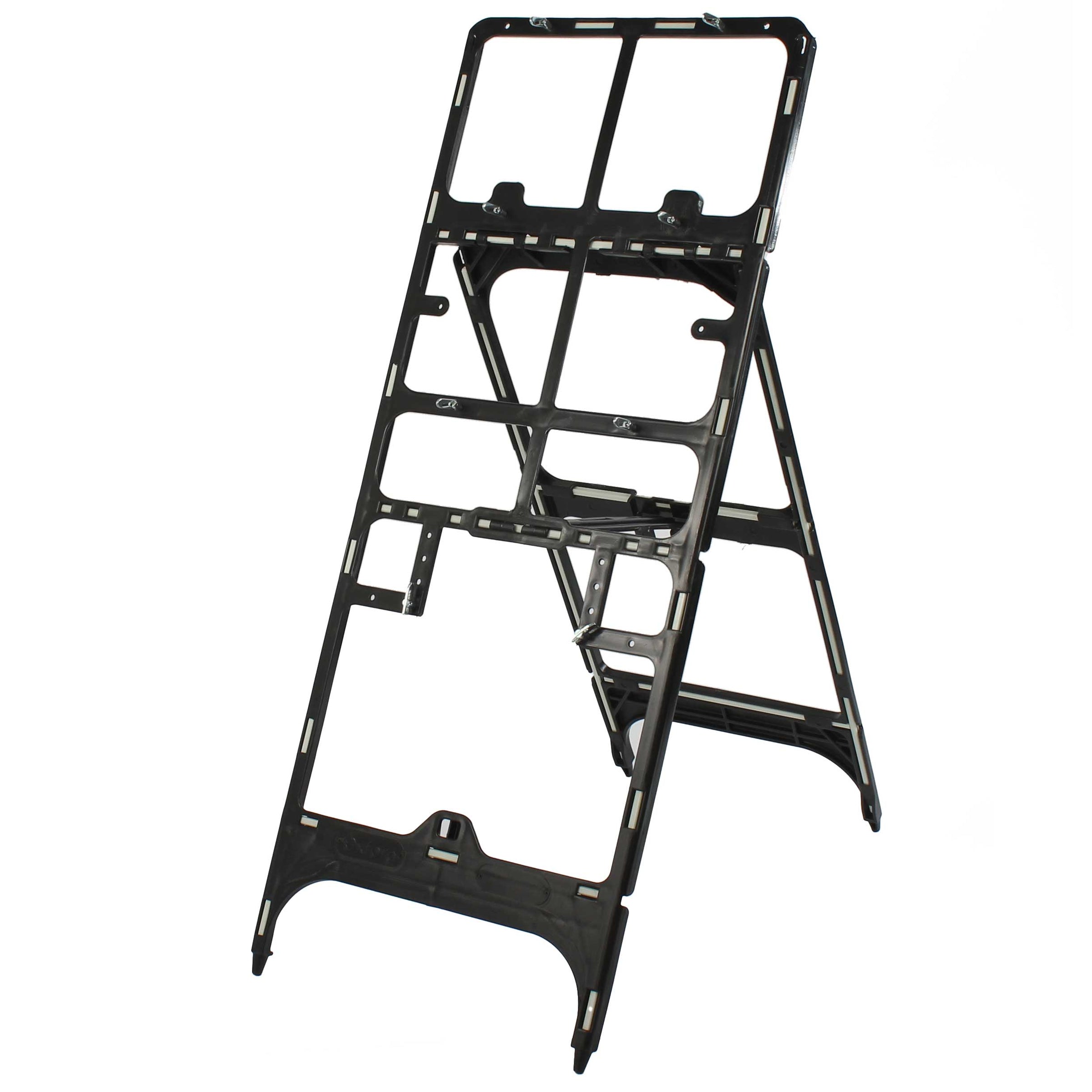 The Enduraframe 1500 stands 1360mm tall when deployed and features metal toggles at 300mm centres for fixing quick-fit signage. The quick-fit system allows the frame to accommodate the readily available and extensive range of quick-fit sign faces on the market. When collapsed, these frames can be stacked with and without the attached signfaces.