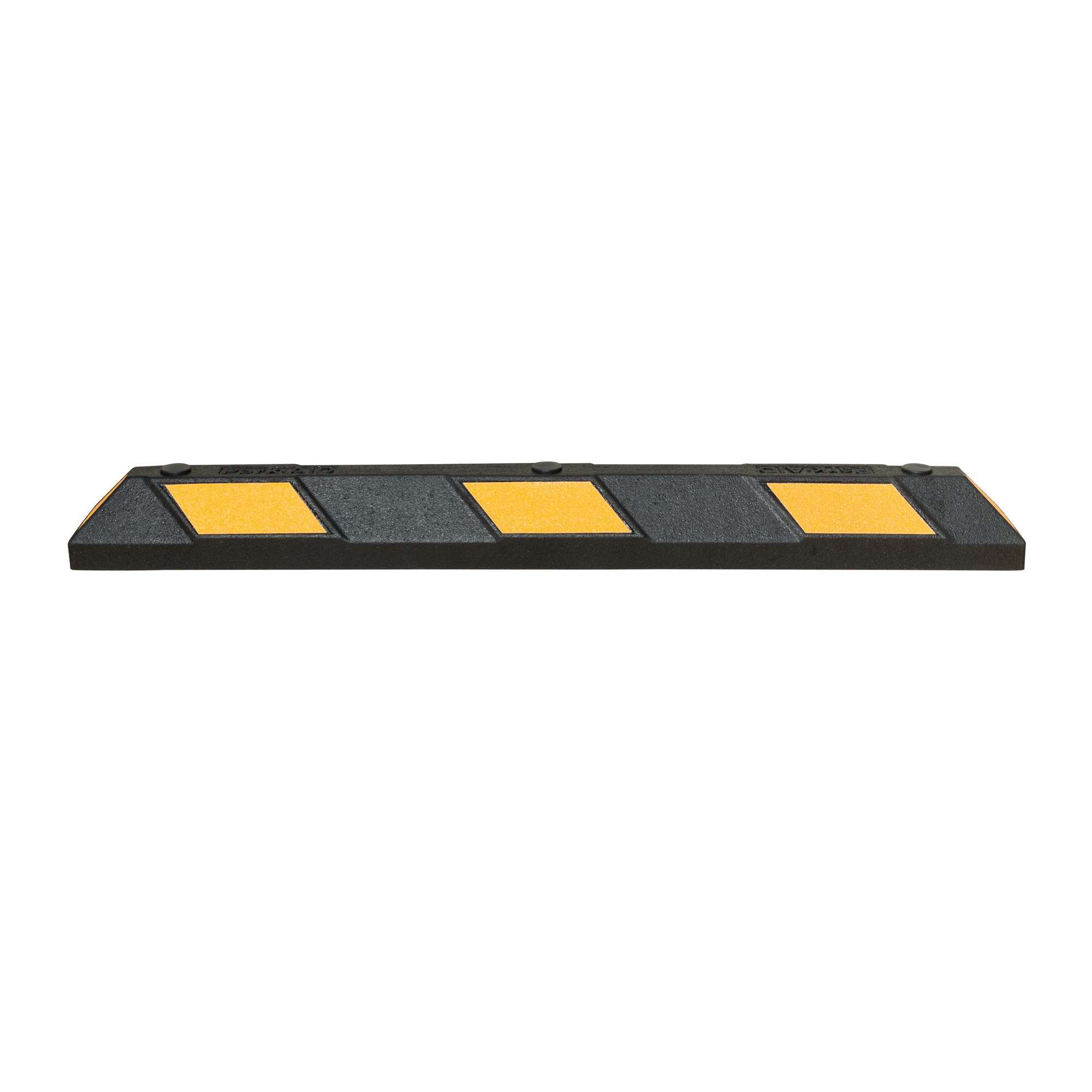 Each parking stop is 1800mm long, enough to span the front wheels of most vehicles, and comes complete with bolt-down fixings, allowing you to secure the stops to existing concrete or tarmac surfaces quickly. The stops are made from durable recycled rubber, which won't damage vehicle wheels. Reflective strips applied to the stops ensure that they are easily seen even in the darker winter months.
