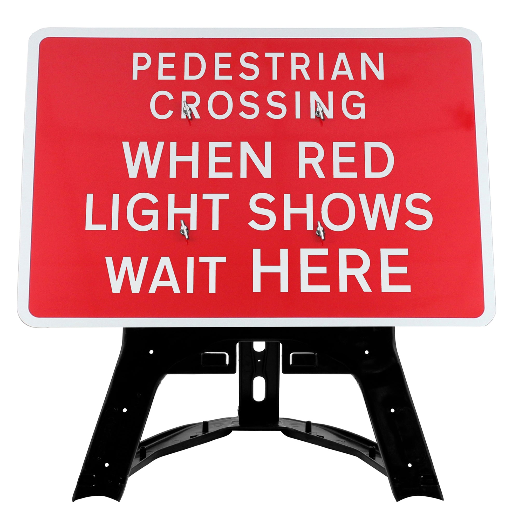 This Pedestrians Crossing When Red Light Shows Wait Here 7011.2 QuickFit EnduraSign is normally deployed on temporary crossings informing drivers that they must stop for red lights, improving pedestrian safety. These are often used in conjunction with other road traffic signs including the Traffic Lights Ahead EnduraSign.