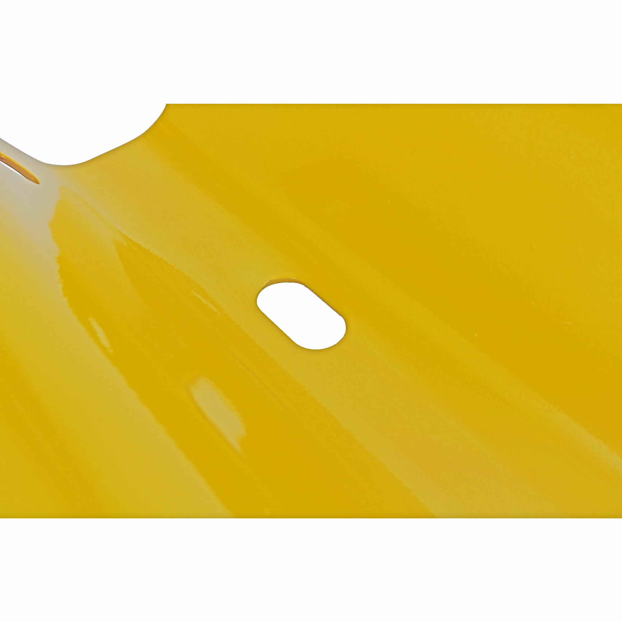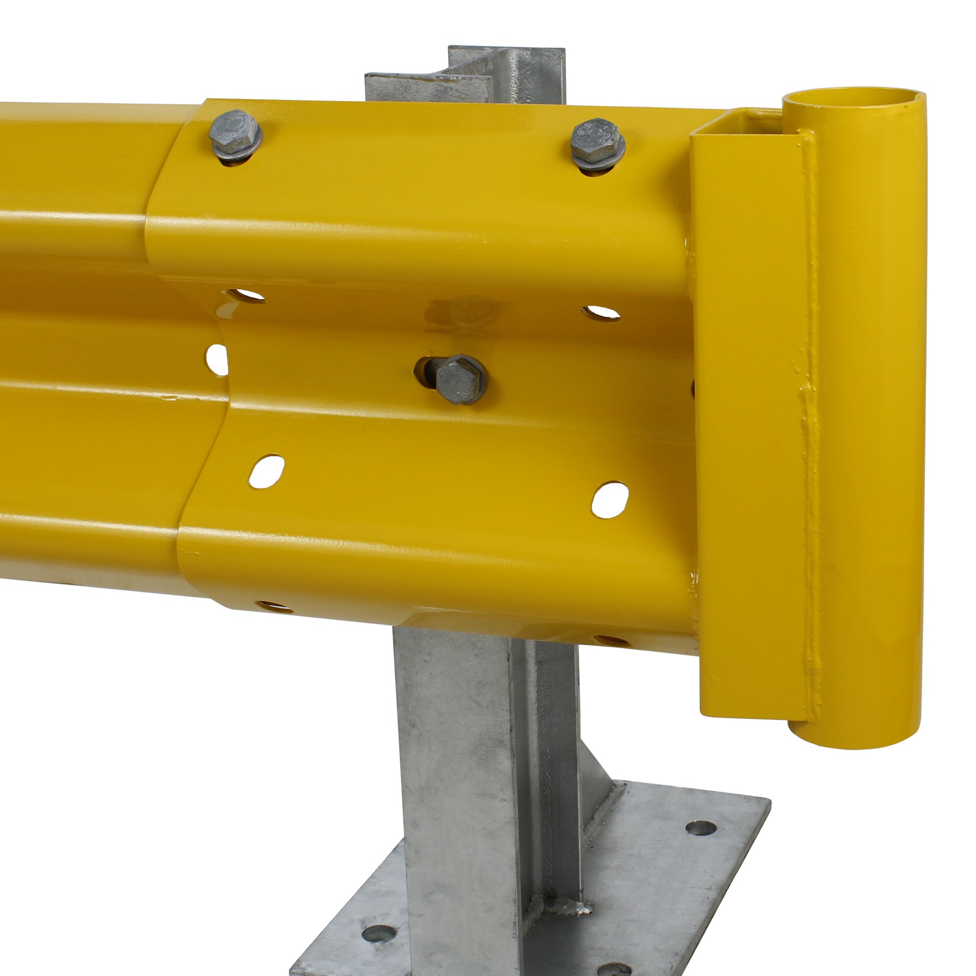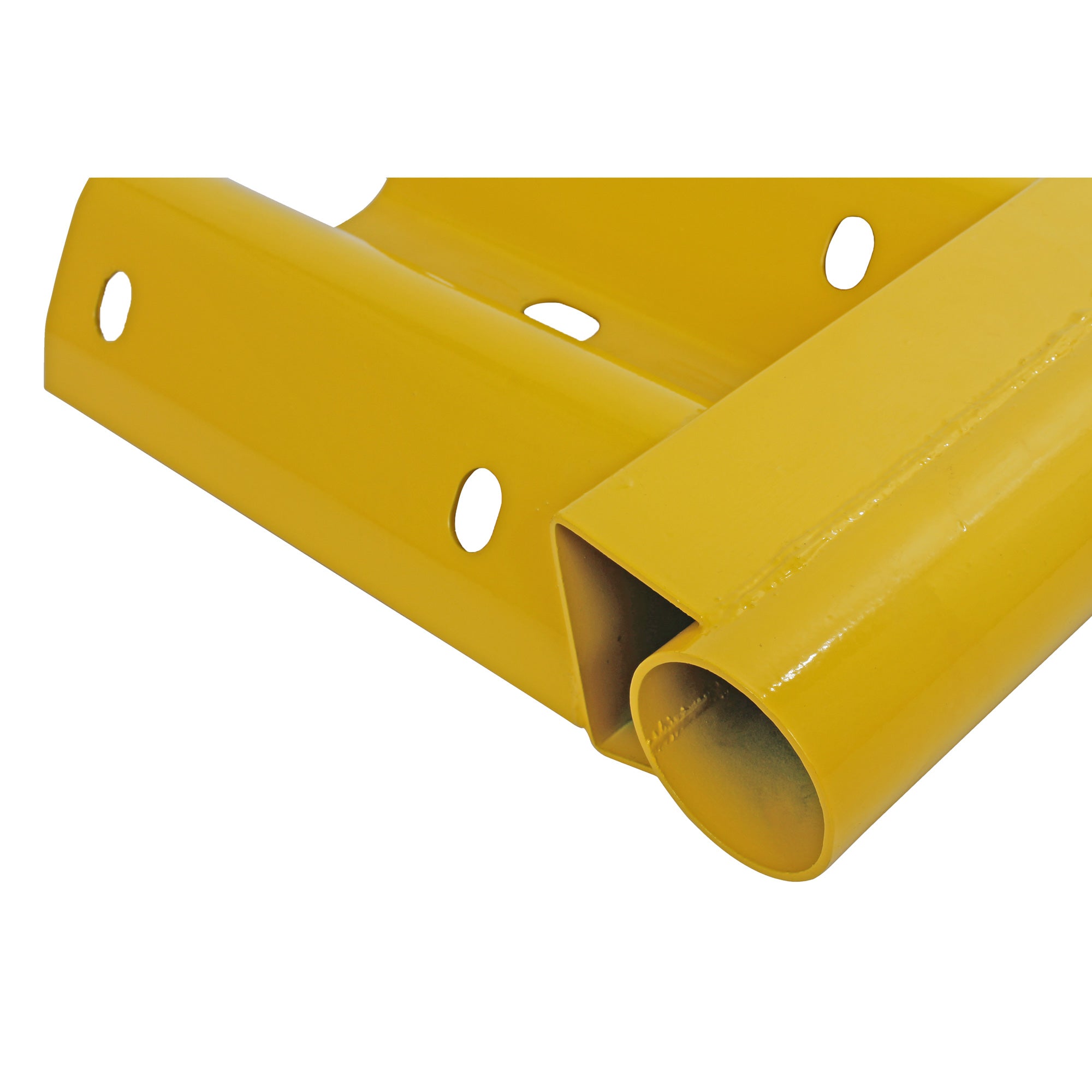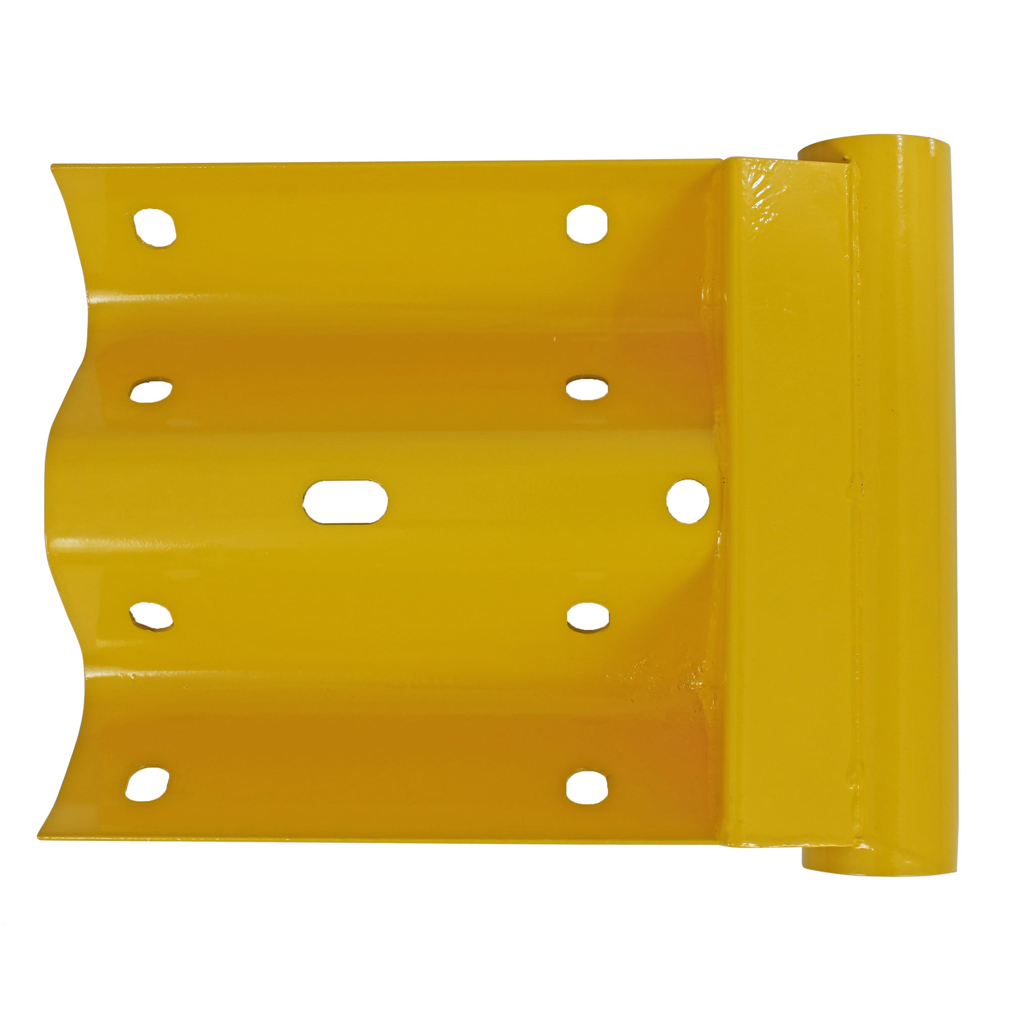 This Armco scroll end is a bright yellow powder-coated version of the standard galvanised scroll end. It has the exact same high quality galvanised finish which protects against corrosion but with the addition of a brightly coloured yellow powder coating. This makes the end cap easier to spot against busy backgrounds where it would otherwise blend in.