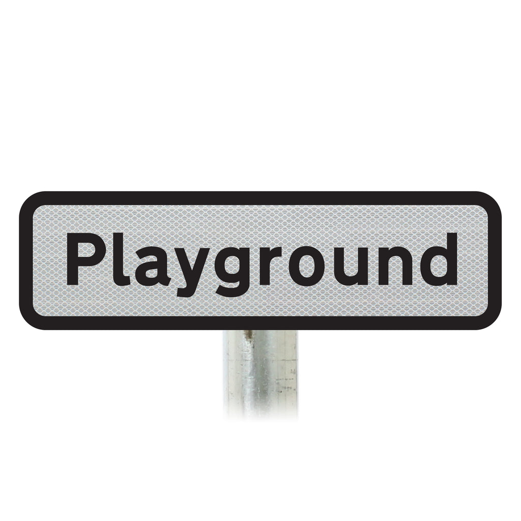 This Supplementary plate is used in combination with sign face 545. It warns drivers that there is a children's playground ahead and that there may be more children in the road than would normally be expected.