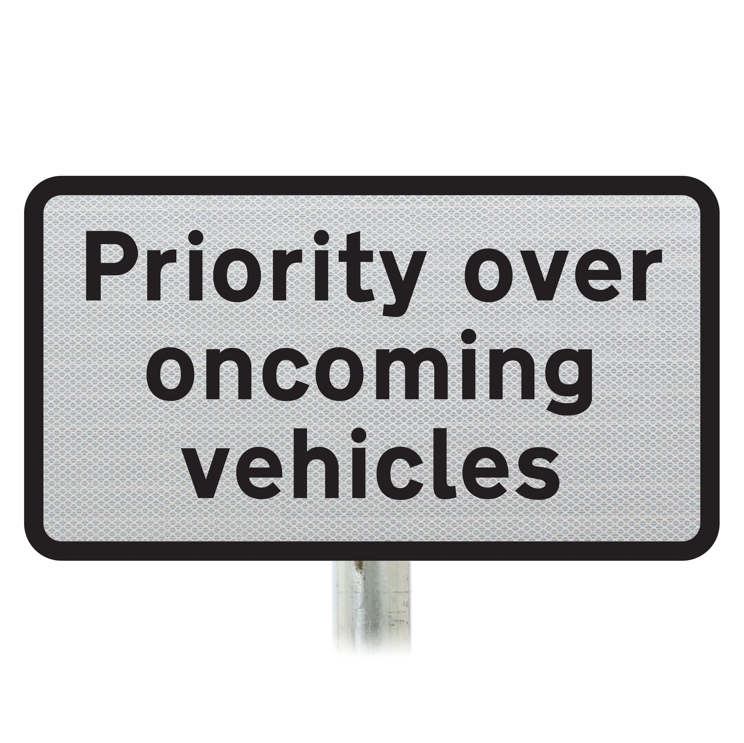This supplementary plate details that drivers have priority over vehicles coming towards them. These are often seen in built-up areas in the suburbs where traffic calming measures are in place to reduce speeds. They can also be seen frequently in seaside towns where narrow roads are not sufficient for two vehicles to pass.